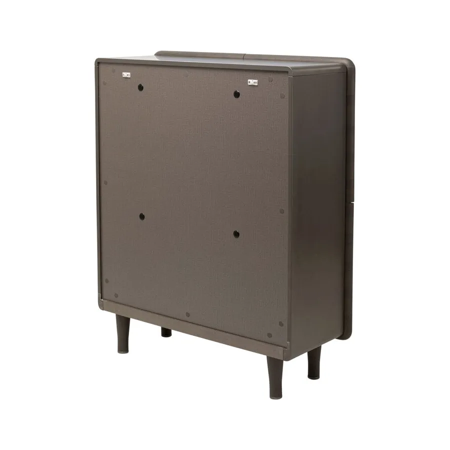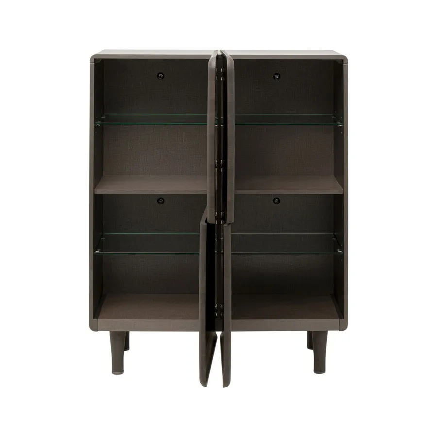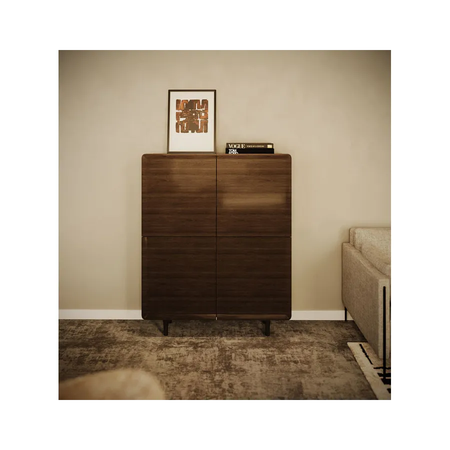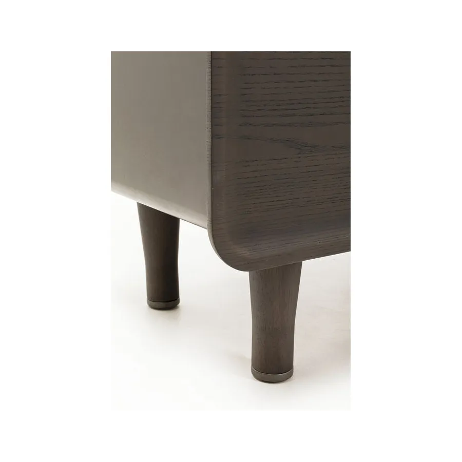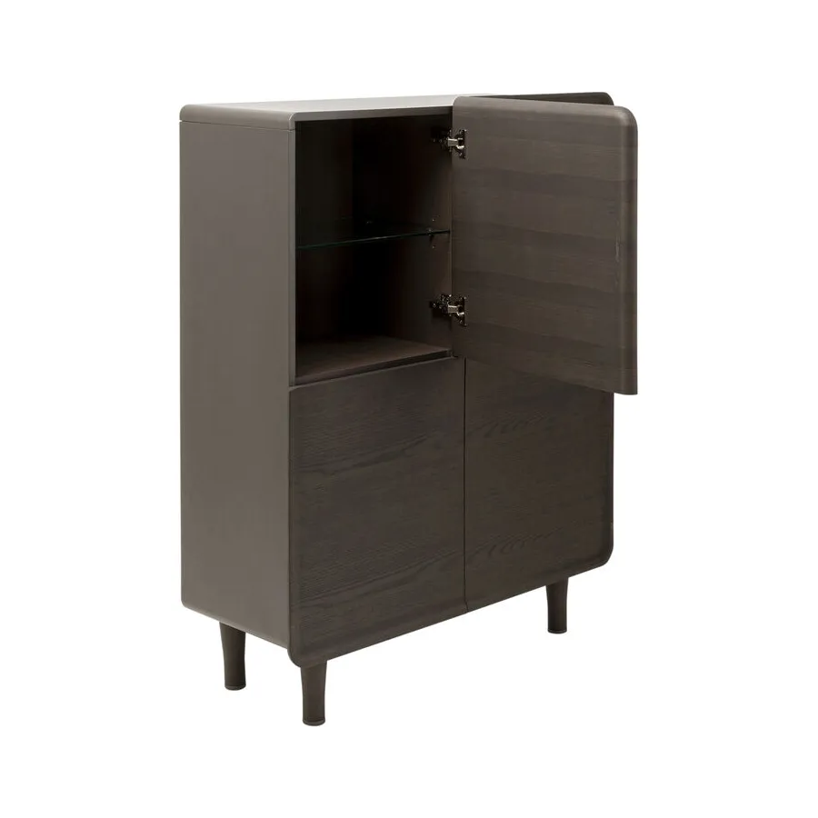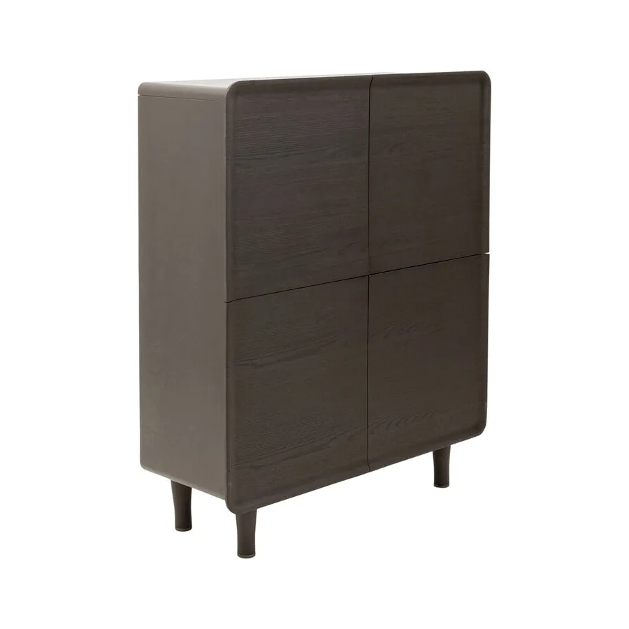 Wysoki kredens dodaje wyrafinowanego akcentu każdemu pomieszczeniu i bez trudu łączy funkcjonalność z nowoczesnym designem. Delikatne połączenie ciemnego jesionu i stali malowanej proszkowo tworzy harmonijne połączenie ciepła i chłodu, które zrobi wrażenie w każdym pomieszczeniu. Dzięki dużej przestrzeni do przechowywania i eleganckim, czystym liniom idealnie nadaje się do stylowych salonów, nowoczesnych korytarzy lub jadalni. Uzupełnia minimalistyczny, a także industrialny i skandynawski styl wnętrz, utrzymując porządek i zapewniając miejsce na osobiste akcenty, takie jak rośliny, wazony lub dzieła sztuki. Mebel, który jest zarówno praktyczny, jak i estetyczny