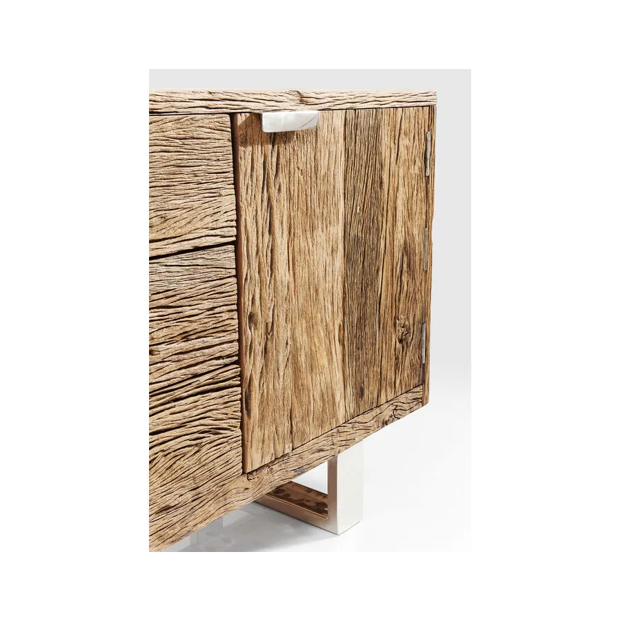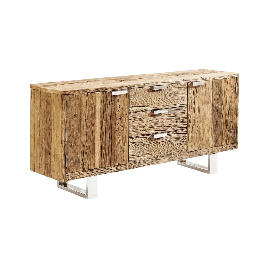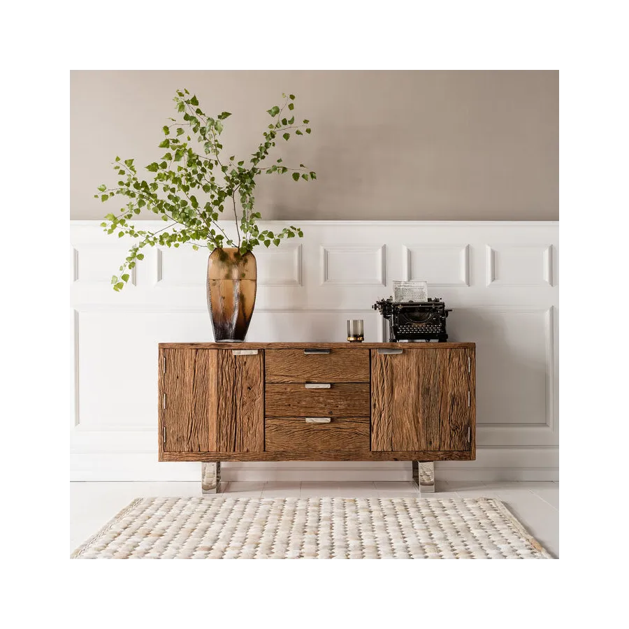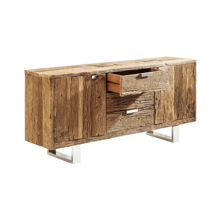 Projekty serii mebli Rustico to ręcznie wykonane, niepowtarzalne elementy, które wyróżniają się ekscytującym kontrastem pomiędzy litym drewnem pochodzącym z recyklingu a błyszczącą stalą nierdzewną. Te wyjątkowe meble będą pasować zarówno do minimalistycznego apartamentu typu penthouse, jak i nowoczesnego wiejskiego domu. Ponadczasowo piękne meble, które wszędzie nadają indywidualny wygląd i kuszą, by dotknąć ich żywą strukturą drewna