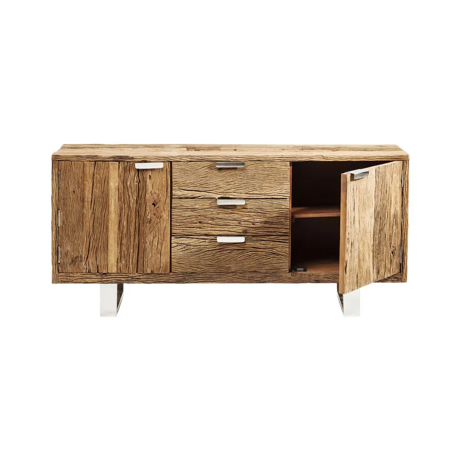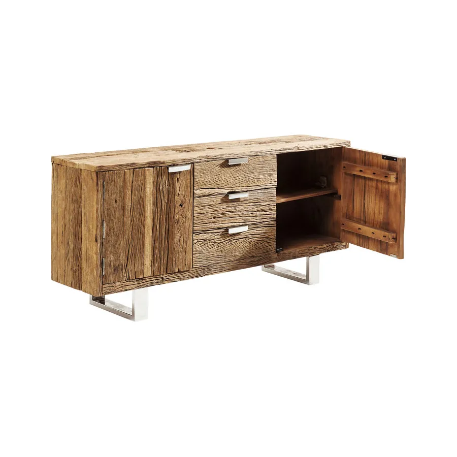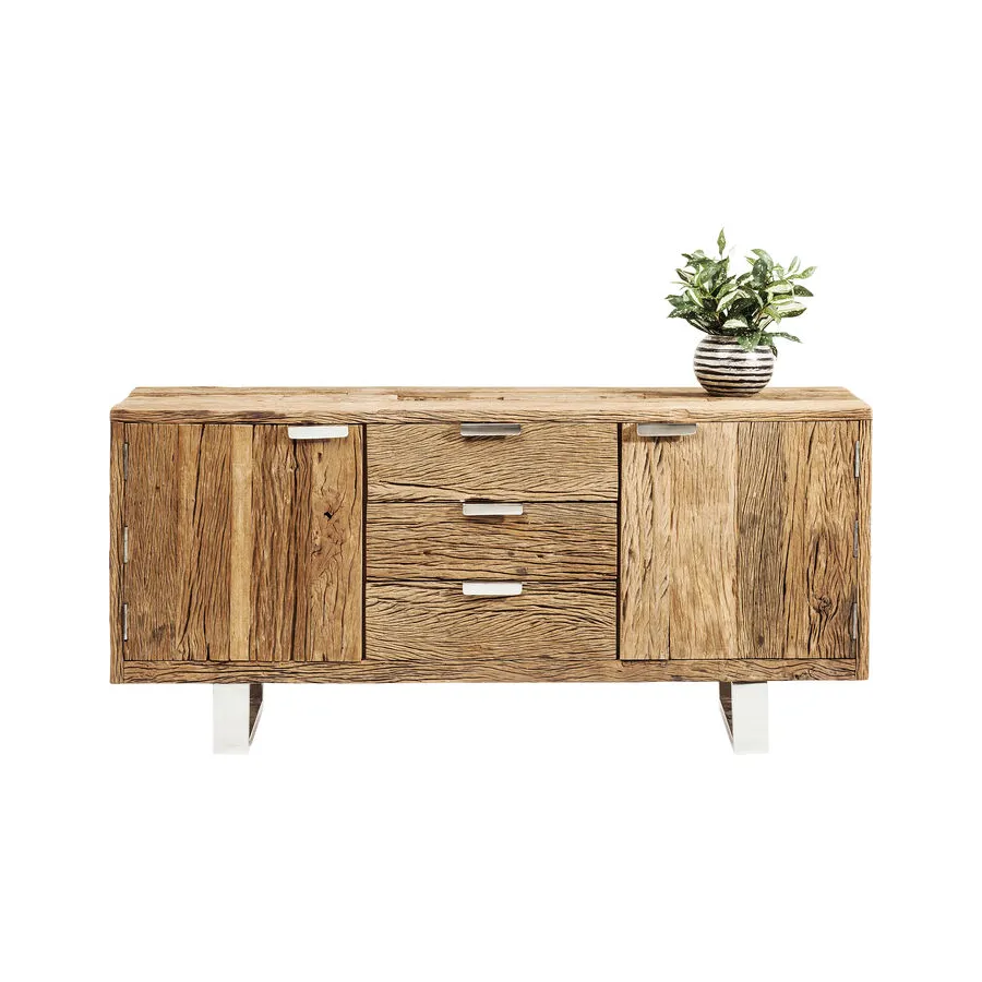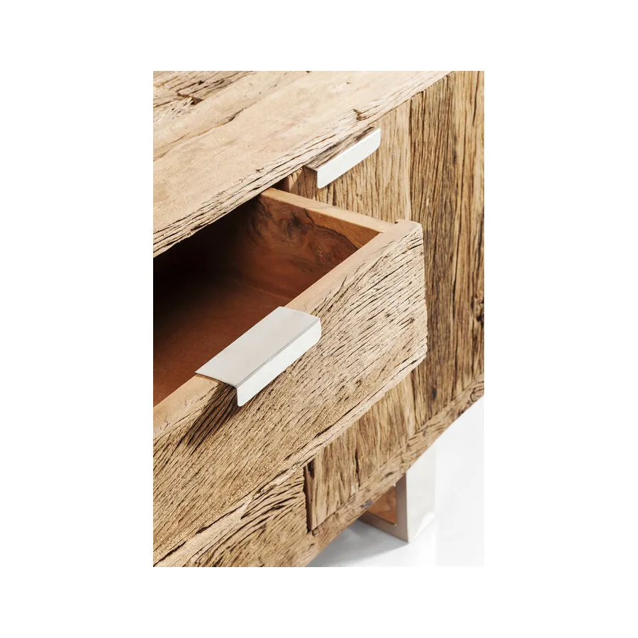 Projekty serii mebli Rustico to ręcznie wykonane, niepowtarzalne elementy, które wyróżniają się ekscytującym kontrastem pomiędzy litym drewnem pochodzącym z recyklingu a błyszczącą stalą nierdzewną. Te wyjątkowe meble będą pasować zarówno do minimalistycznego apartamentu typu penthouse, jak i nowoczesnego wiejskiego domu. Ponadczasowo piękne meble, które wszędzie nadają indywidualny wygląd i kuszą, by dotknąć ich żywą strukturą drewna
