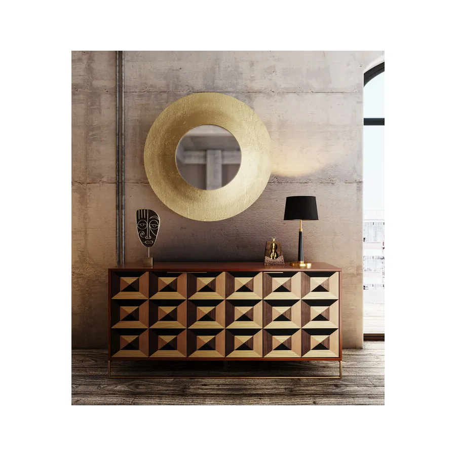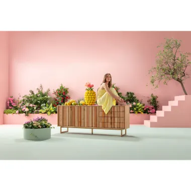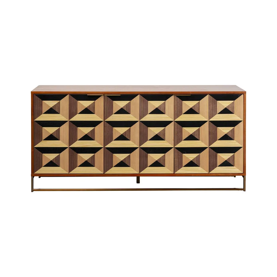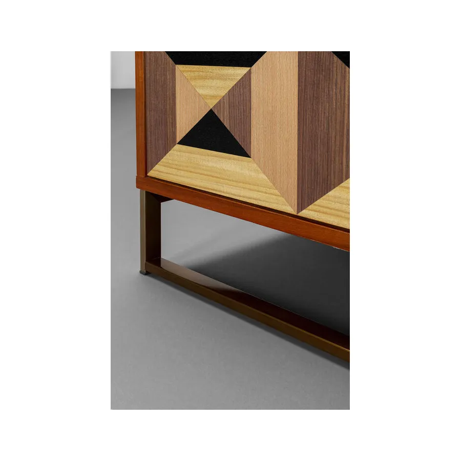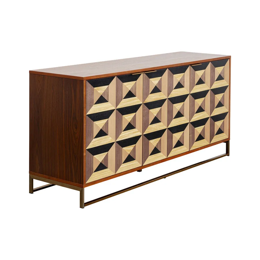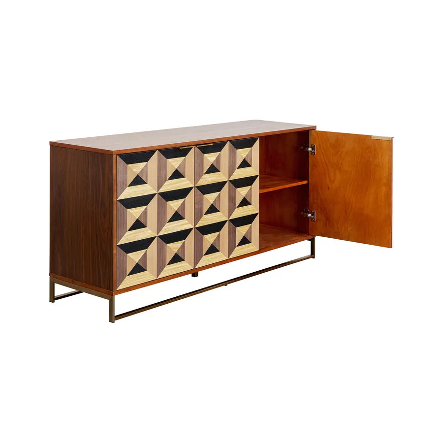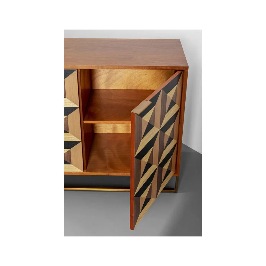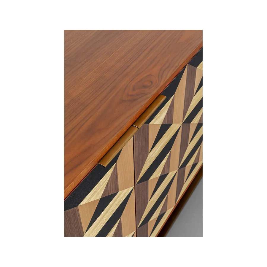 Różnokolorowa i ułożona okleina jesionowa na frontach tworzy idealną iluzję trójwymiarowości, nie uwierzysz własnym oczom. Znakomity kunszt wykonania tego kredensu sprawia, że jest on wyjątkowym elementem centralnym każdego pomieszczenia. Silencio wykracza poza trendy i ozdobi każde nowoczesne, eleganckie lub klasyczne wnętrze. Za trojgiem drzwi znajdziesz obszerną przestrzeń do przechowywania, którą dzięki regulowanym półkom możesz dostosować do swoich potrzeb. Świetnie prezentuje się także wnętrze kredensu, na które nałożono fornir orzechowy. Dzięki wyjątkowo płaskim uchwytom na drzwiach nic nie zakłóci wyrafinowanego efektu ozdobnych frontów. Wszystkie powierzchnie są lakierowane, aby chronić ten piękny mebel