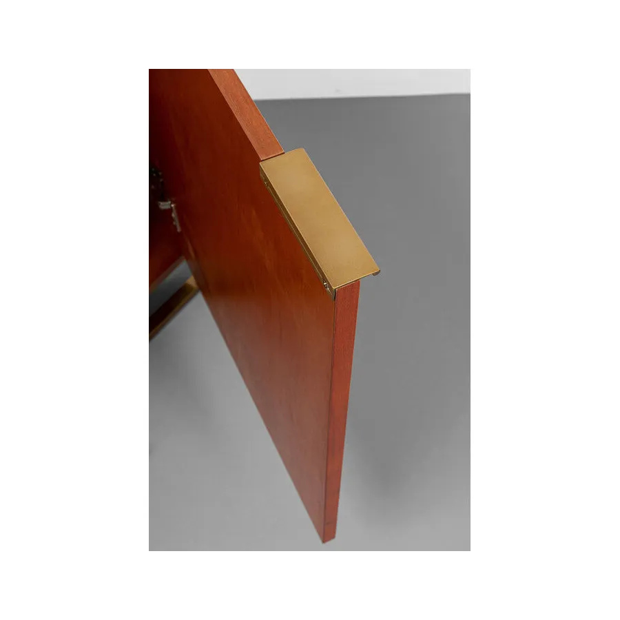 Korpus i fronty: jesionowa płyta pilśniowa średniej gęstości (MDF) fornirowana: kolor orzecha włoskiego, panel tylny: płyta pilśniowa średniej gęstości (MDF) lakierowana, stopka/podstawa: szczotkowana stal nierdzewna, półka: orzechowa płyta pilśniowa średniej gęstości (MDF) fornirowana, uchwyt: stal nierdzewna szczotkowana, półka: regulowana wysokość