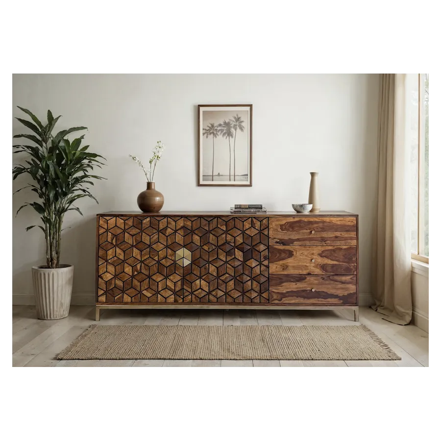 Korpus wykonany z litego drewna sheesham o wyrazistym usłojeniu