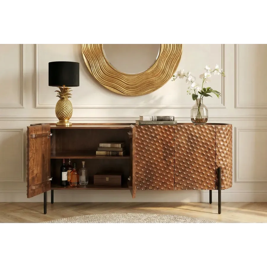 Invicta Komoda ADLON 3D brązowe mango 177 x 76 x 38cm / 47148