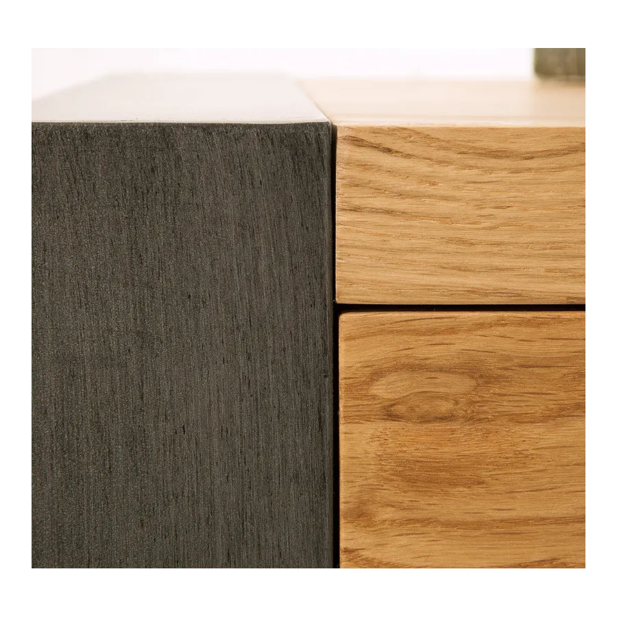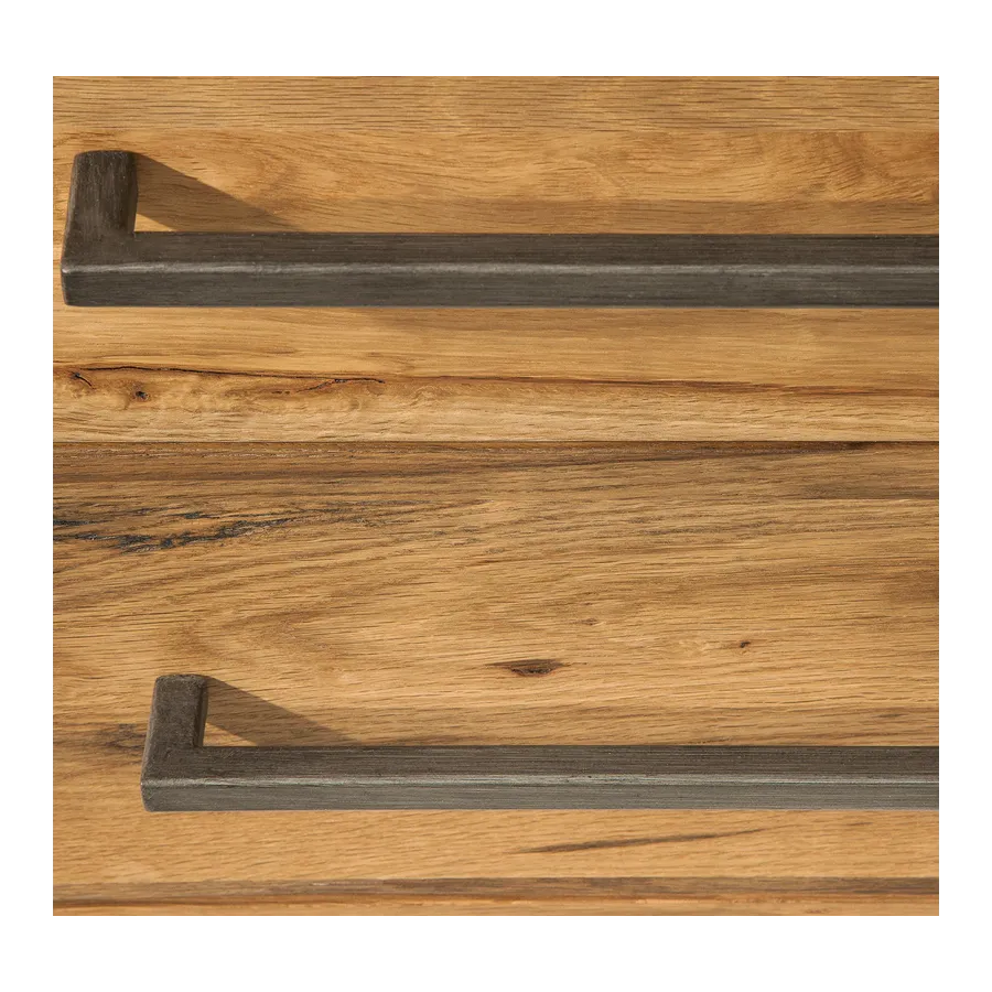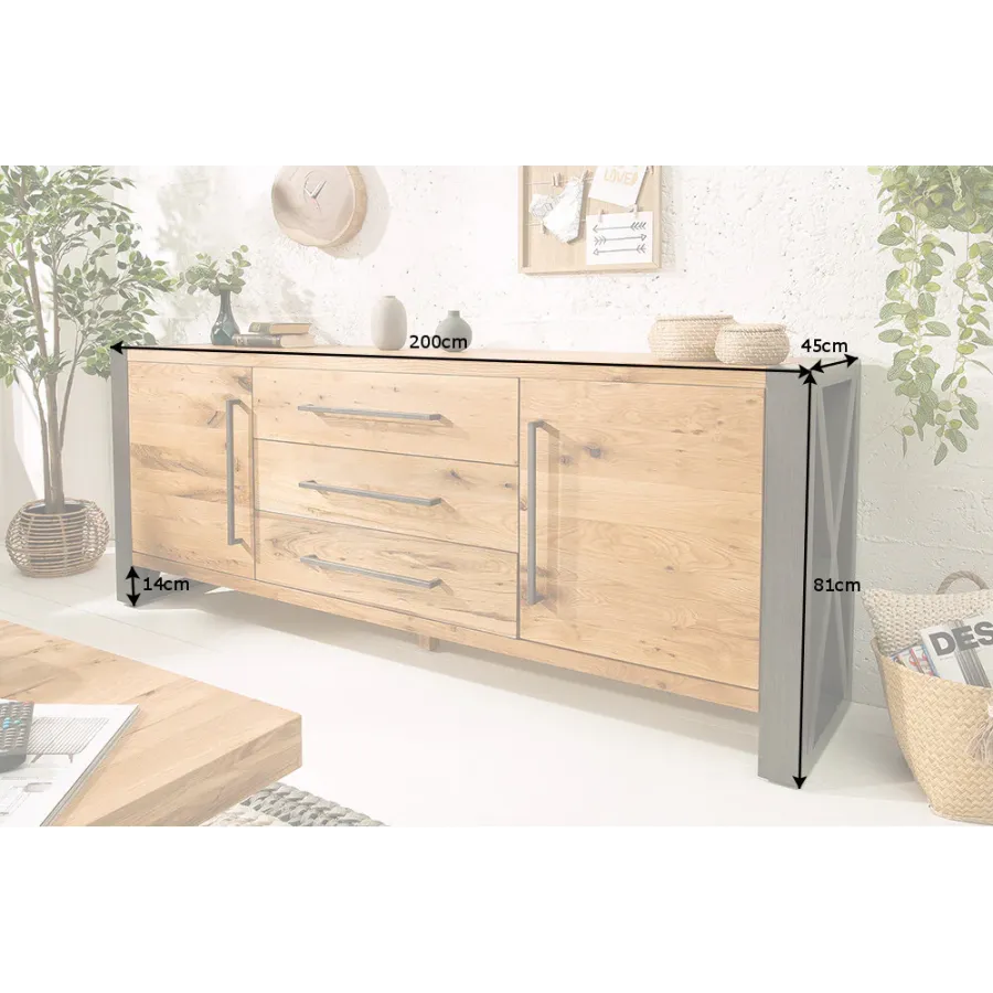 Z naszą listwą THOR z litego drewna wniesiesz do swojego domu kawałek nieskażonej natury. Podczas obróbki deski dużą wagę przywiązywano do oryginalności drewna. Drewno dzikiego dębu na deskę jest wybierane ręcznie. Charakterystyczne nacięcia, krawędzie i otwory np. od wyrywanych gwoździ dodają drewnu uroku; czeka na Ciebie wyjątkowy kawałek! Boczne panele ze skrzyżowanymi usztywnieniami wspierają industrialny styl, który promieniuje tablica telewizyjna.