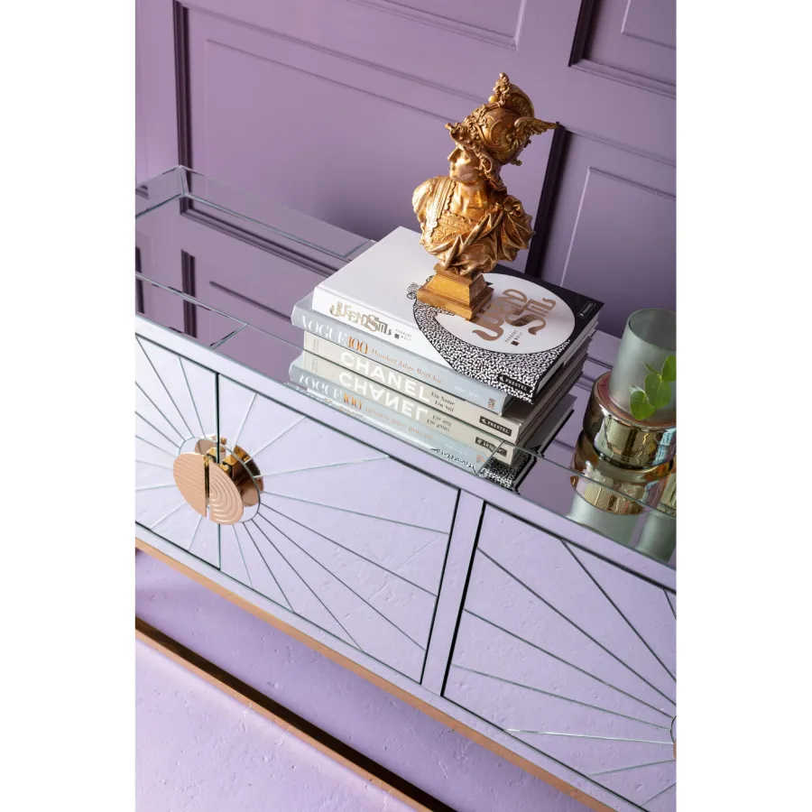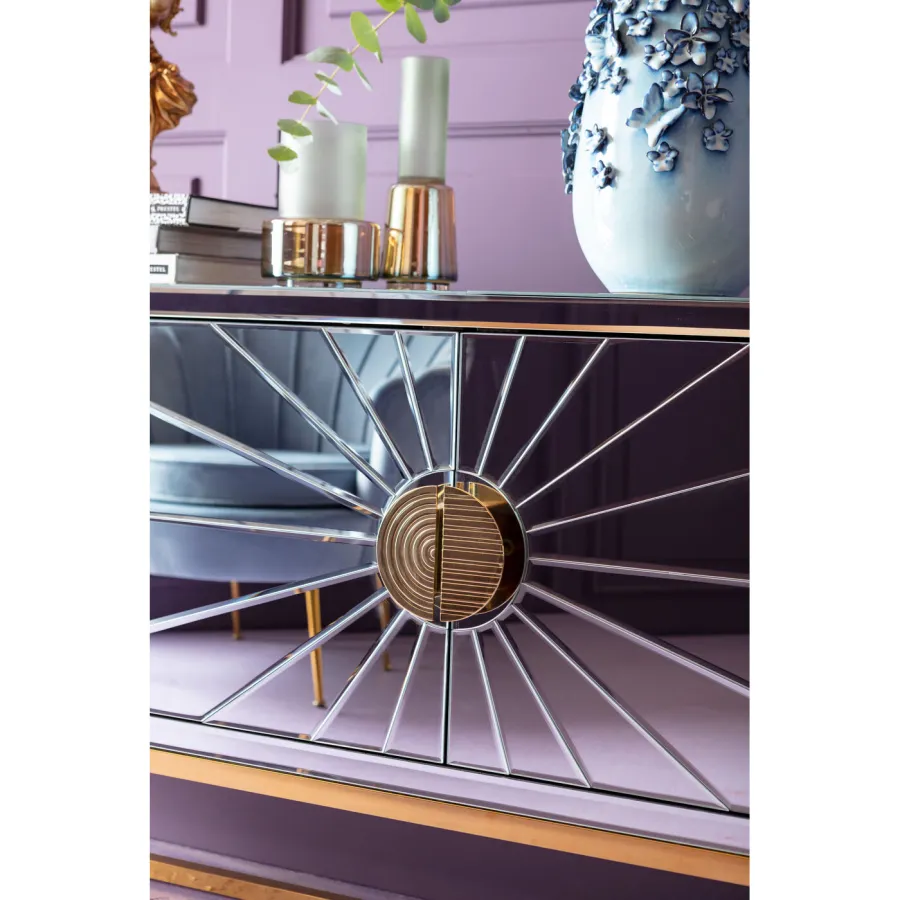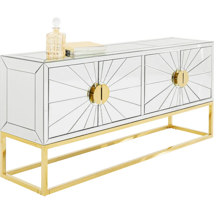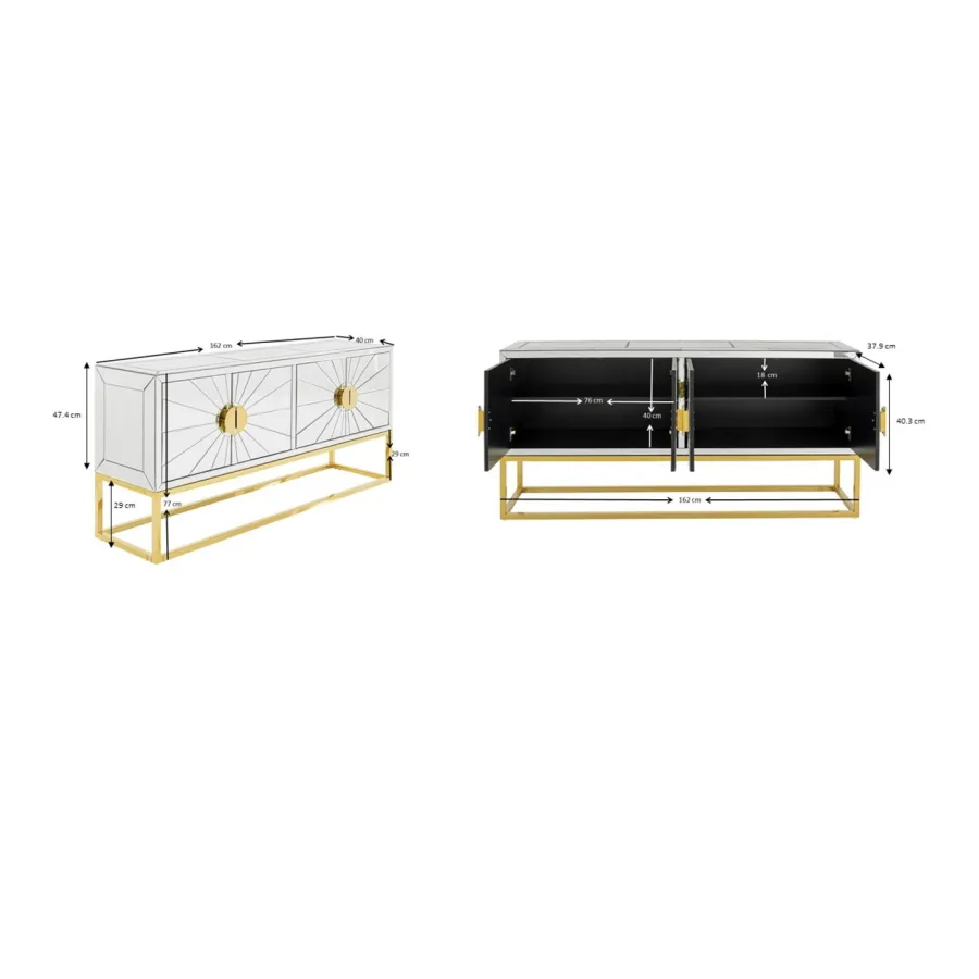Ten kredens wnosi światło słoneczne do każdego pomieszczenia. Z jednej strony ze względu na efektowny design, z drugiej dlatego, że lustrzane meble odbijają światło i nadają pomieszczeniom jasność i blask. Jako centralny mebel Queen jest idealnym wyborem, aby dodać uroku i wspaniałości salonowi, sypialni, a nawet domowemu biuru. Sprawdzi się także w niewielkich pomieszczeniach, gdyż jego wymiary 162 (szerokość) x 77 (wysokość) x 40 (głębokość) cm sprawiają, że Queen jest kompaktowym faworytem
