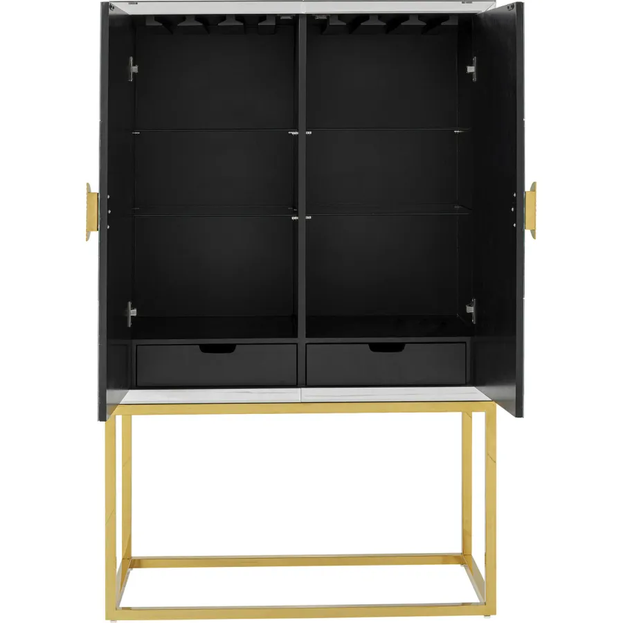 katalog: Korpus: Płyta pilśniowa średniej gęstości (MDF) lakierowana, Stopa/Podstawa: Stal malowana proszkowo, Uchwyty: Stal malowana proszkowo, Panele: Lustrzane szkło, Wymiary wewnętrzne w świetle Półka,
