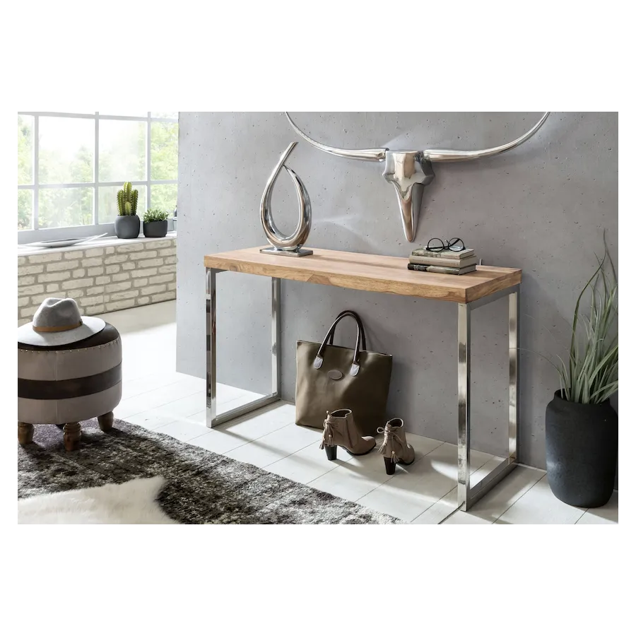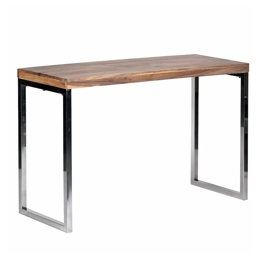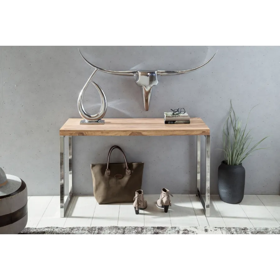 Ekscytujące połączenie materiałów – lite drewno i prosta chromowana rama