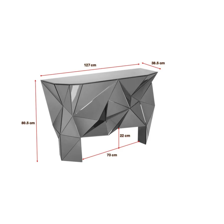 Ta majestatyczna, lustrzana konsola pryzmatyczna jest arcydziełem załamania światła i elegancji. Zachwyca fascynującą grą tęczowych barw, które mienią się różnymi barwami w zależności od padania światła i kąta patrzenia. Dzięki artystycznym pryzmatom każdy pokój staje się prawdziwą sensacją. Unikalna deklaracja wyrafinowanego smaku, który łączy w sobie luksus i innowację