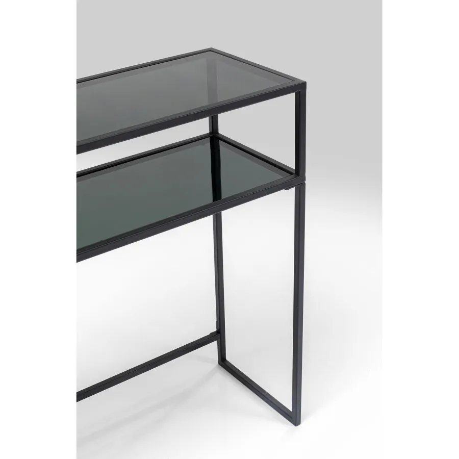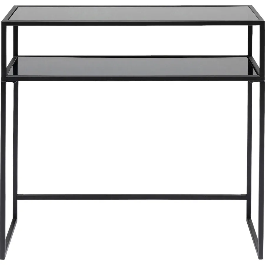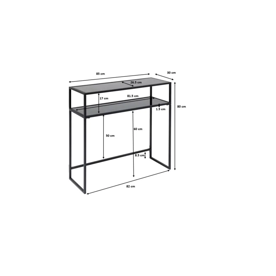 Ta konsola łączy w sobie filigranowy design z funkcjonalną elegancją. Mieszanka materiałów ze stali i bezpiecznego szkła tworzy nowoczesny, przestronny wygląd, który bez trudu wtapia się w różne style życia - od minimalistycznego po miejski. Niezależnie od tego, czy będzie to stylowa półka w przedpokoju, dyskretny organizer w sypialni, czy też szykowna scena do dekoracyjnych akcentów w salonie – jego uderzający kształt sprawia, że jest to idealna dekoracja wnętrza. Wolnostojący lub umieszczony na ścianie, wnosi strukturę i lekkość do każdego