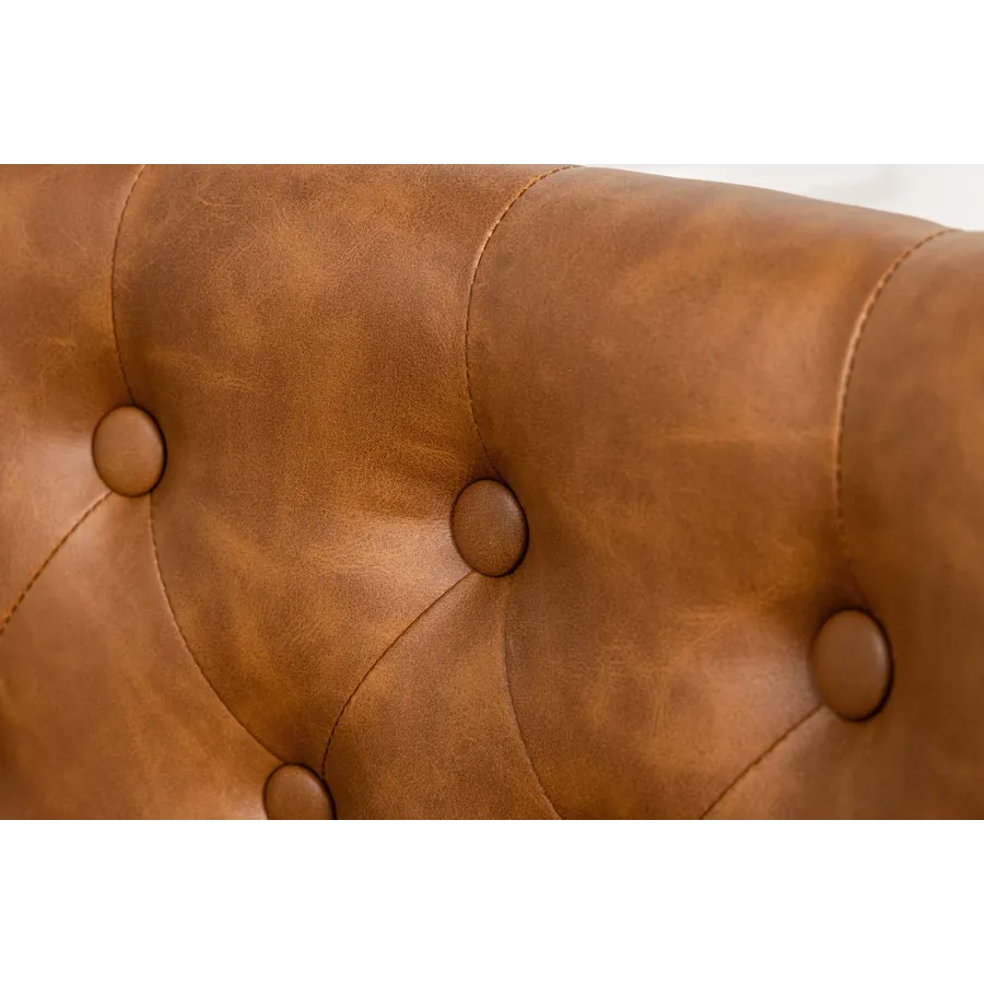 Stwórz stylową aranżację w swoim domu dzięki temu pięknemu krzesłu z serii CASTLE. Jego elegancki design nawiązuje do ponadczasowego projektu Chesterfield, co podkreśla wyrafinowane przeszycie guzików na oparciu. Połączenie wysokiej jakości sztucznej skóry i misternie rozmieszczonych ozdobnych nitów na krawędziach nadaje krzesłu odrobinę luksusu w stylu vintage.