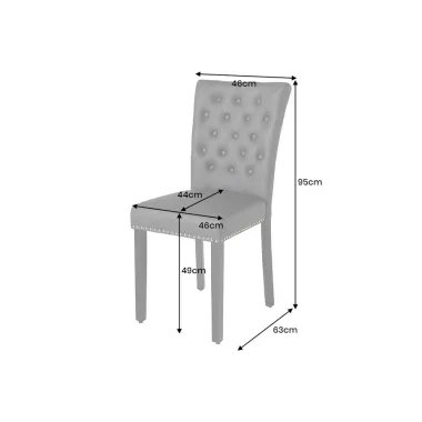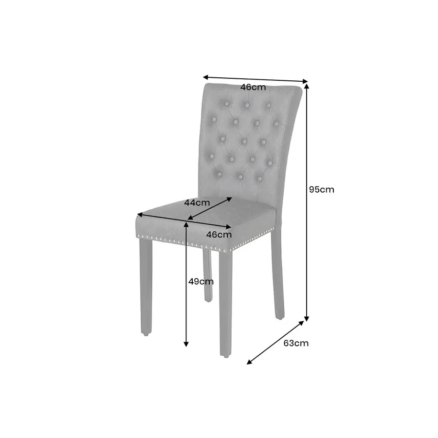 Usiądź i ciesz się nowym ulubionym miejscem przy stole jadalnym! Nasze wygodne krzesła z serii CASTLE łączą w sobie maksymalny komfort siedzenia z eleganckim, przytulnym designem. Wysokie oparcie zapewnia niesamowity komfort, siedzenia a dodatkowo wyposażone są w piękne ozdobne guziki nawiązujące do znanego na całym świecie projektu Chesterfield. Materiał z jakiego wykonane są krzesła imitacja skóry oraz czarne drewniane nóżki nadają krzesłu urokliwego eleganckiego wyglądu. Krzesła idealnie się sprawdza w domu, gdzie są małe dzieci i zwierzęta domowe.