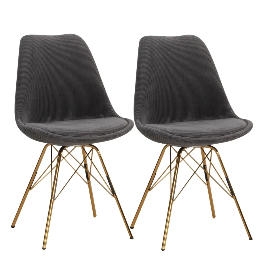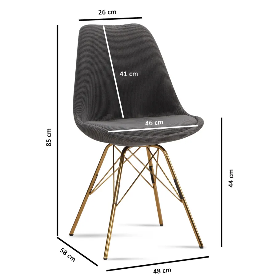 Krzesło do jadalni zachwyca anatomicznie ukształtowanym siedziskiem, które jest pokryte pokrowcem z wysokiej jakości imitacji skóry i wyraźnymi liniami. W ten sposób zapewnia stylową, a jednocześnie nowoczesną atmosferę mieszkalną. Kolejną wizualną atrakcją są nogi krzesła wykonane ze złotego metalu, które są filigranowe i nadal zapewniają stabilną podstawę.