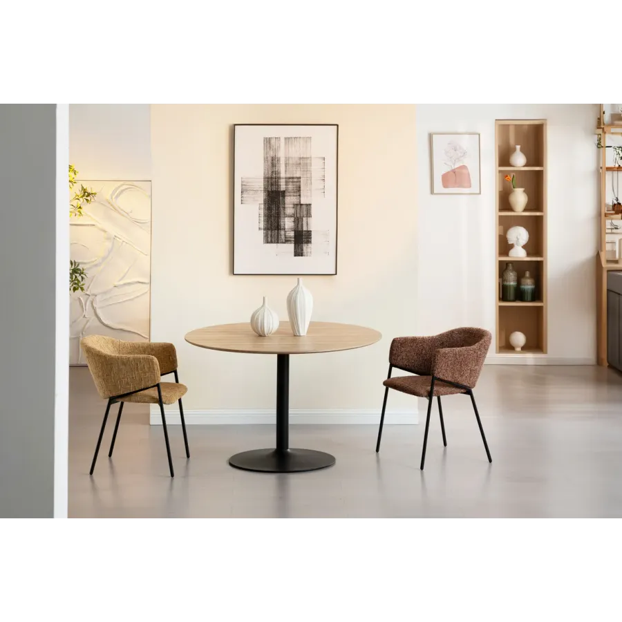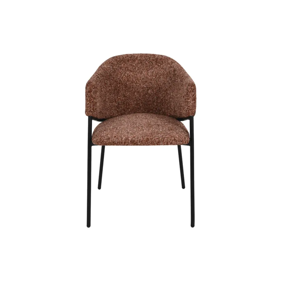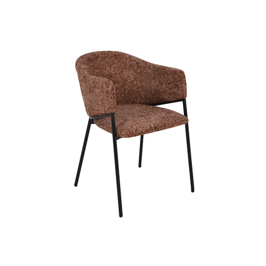 Tył oparcia krzesła  jest również pokryty tkaniną, dzięki czemu można ją umieścić w dowolnym miejscu pokoju jako atrakcyjny element przyciągający wzrok lub oddzielający pokój. Uzupełnij krzesło sofa, fotelem, stolikami bocznymi, lampami lub lustrem ściennym z czarną metalową ramą, aby uzyskać harmonijny ogólny obraz.