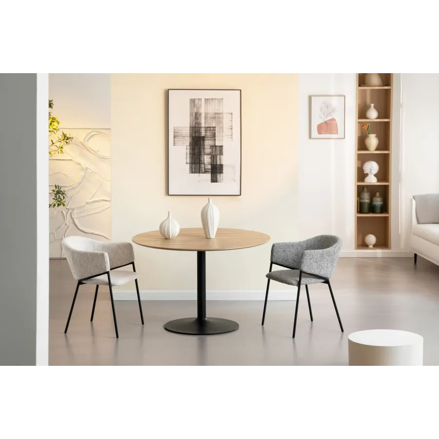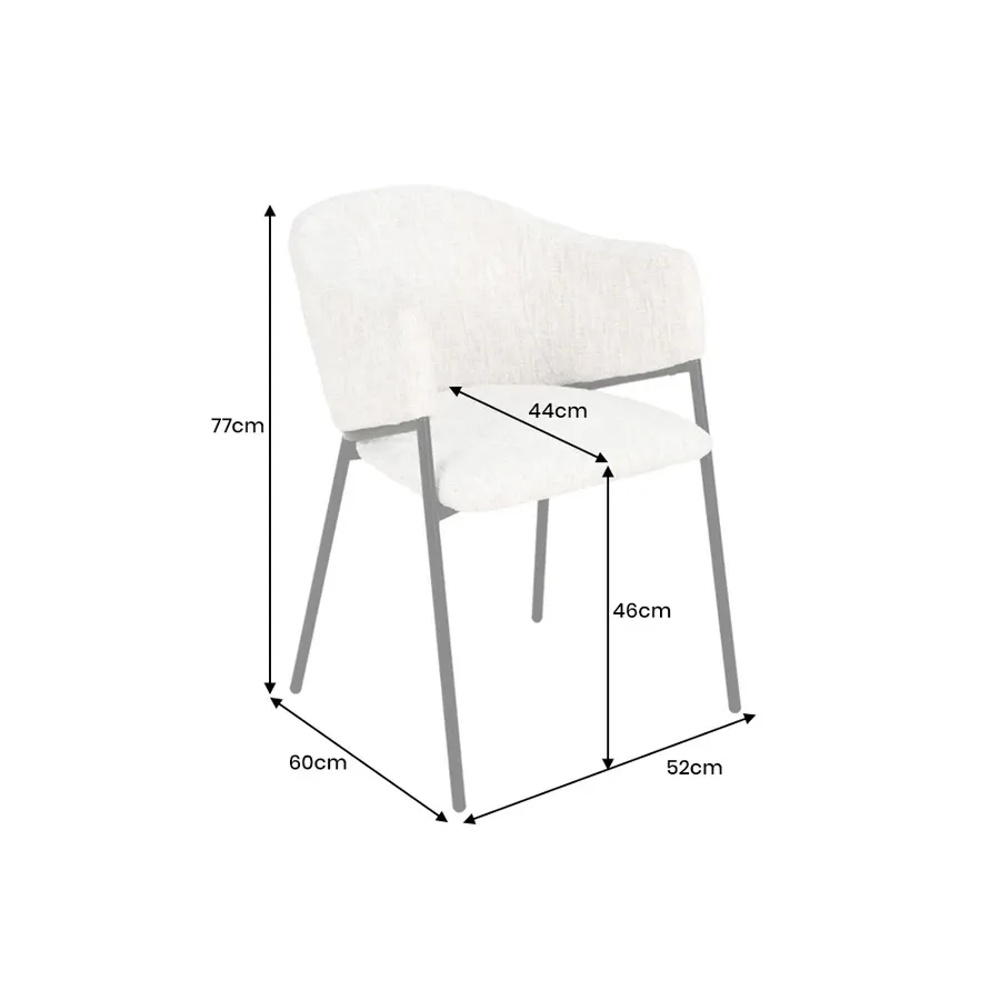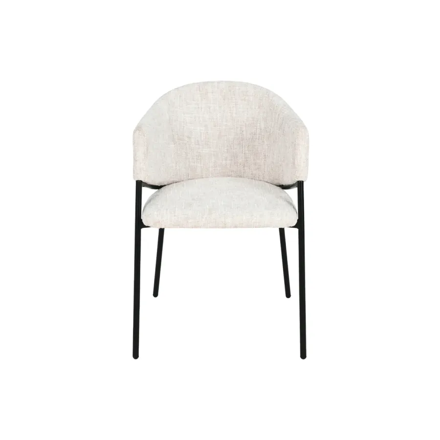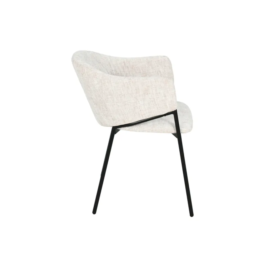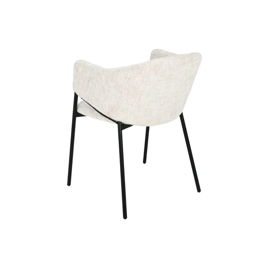 Tył oparcia krzesła jest również pokryty tkaniną, dzięki czemu można ją umieścić w dowolnym miejscu pokoju jako atrakcyjny element przyciągający wzrok lub oddzielający pokój. Uzupełnij krzesło sofa, fotelem, stolikami bocznymi, lampami lub lustrem ściennym z czarną metalową ramą, aby uzyskać harmonijny ogólny obraz.