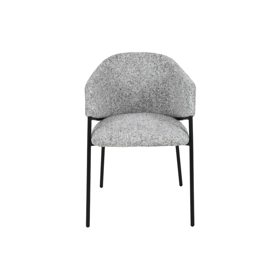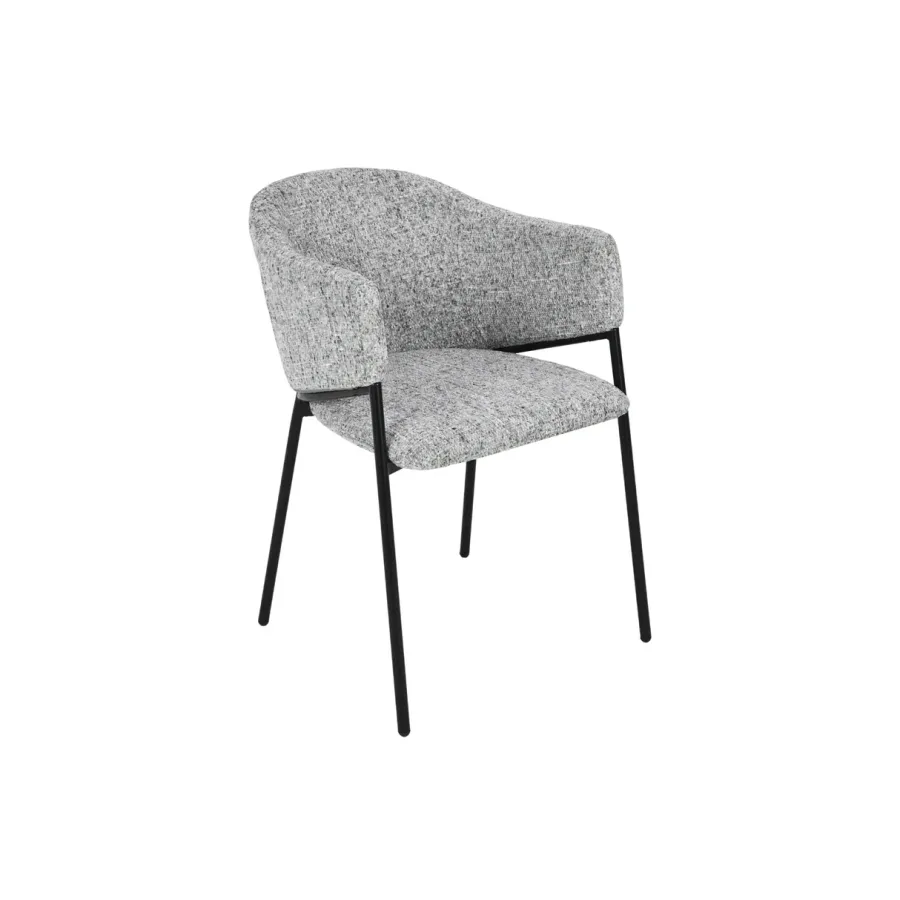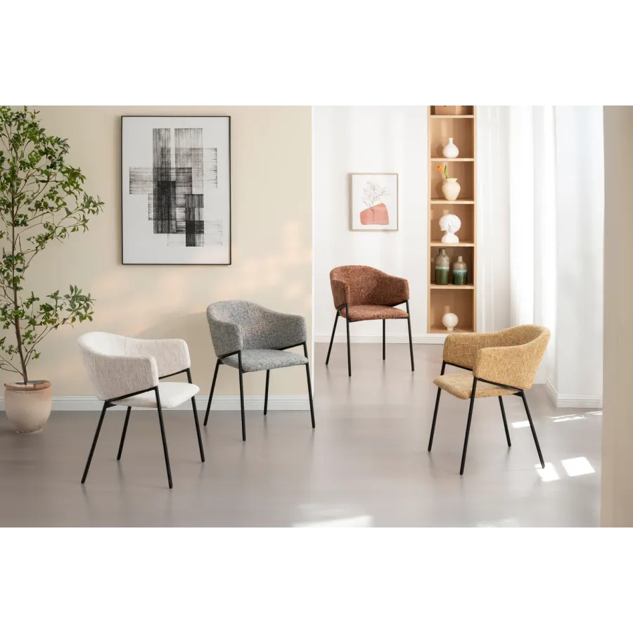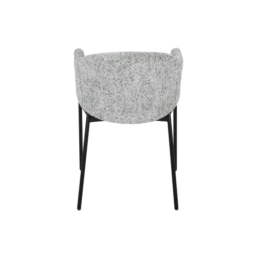 Tył oparcia krzesła jest również pokryty tkaniną, dzięki czemu można ją umieścić w dowolnym miejscu pokoju jako atrakcyjny element przyciągający wzrok lub oddzielający pokój. Uzupełnij krzesło sofa, fotelem, stolikami bocznymi, lampami lub lustrem ściennym z czarną metalową ramą, aby uzyskać harmonijny ogólny obraz.