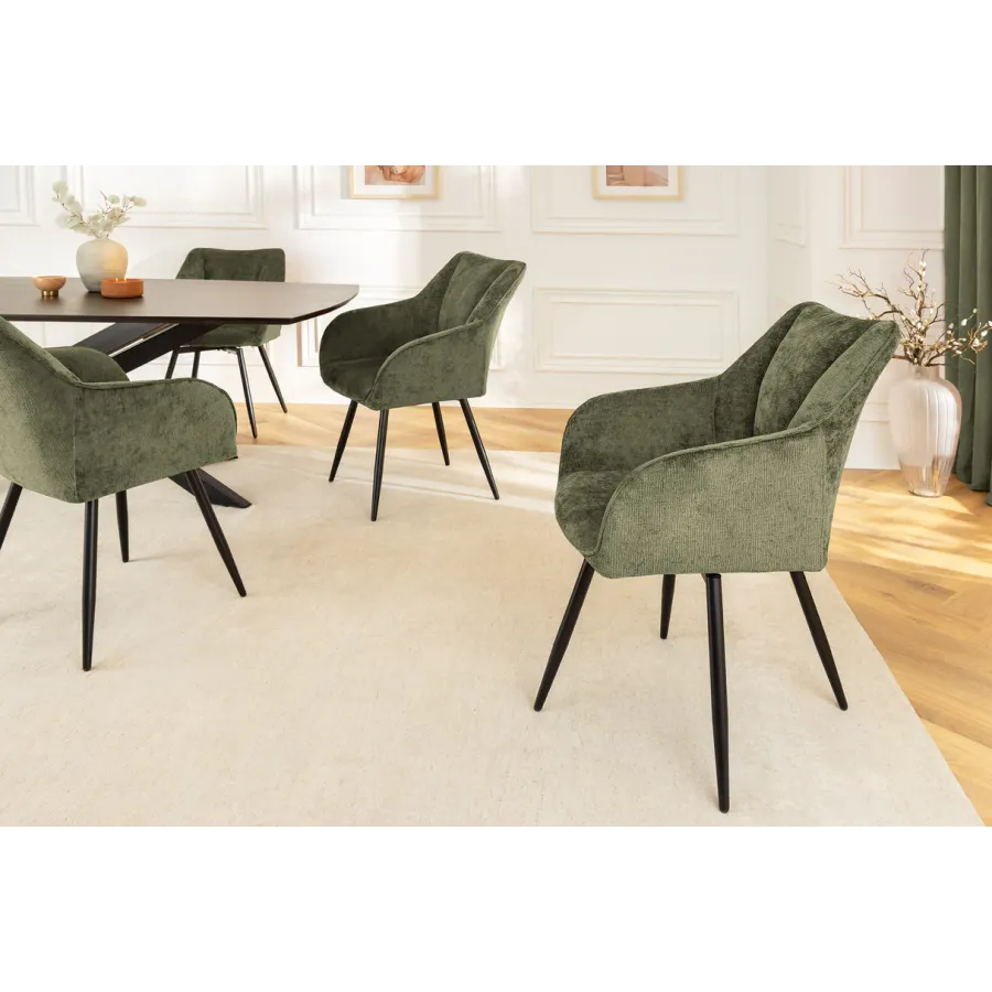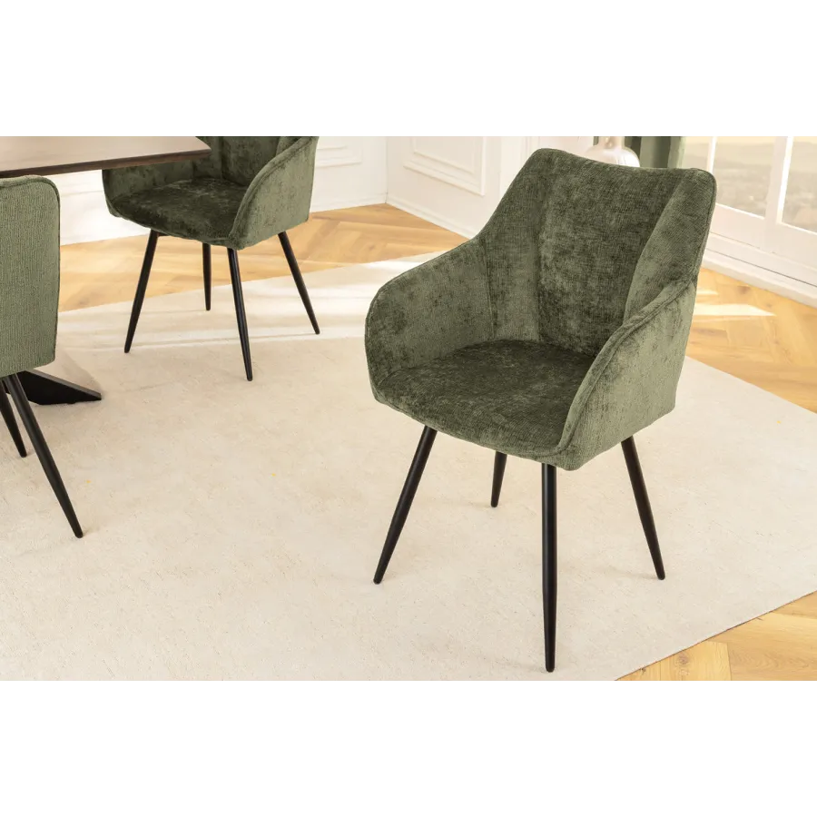 Kolekcja krzeseł AVIGNON od renomowanej niemieckiej marki Invicta Interior to doskonałe połączenie ponadczasowego stylu i nowoczesnej funkcjonalności. Tapicerowane przyjemną w dotyku tkaniną typu chenille w głębokim odcieniu zieleni, szarości, brązu czy beżu z eleganckimi, czarnymi nogami z metalu malowanego proszkowo – te krzesła wprowadzają do wnętrza wyrafinowany klimat retro.