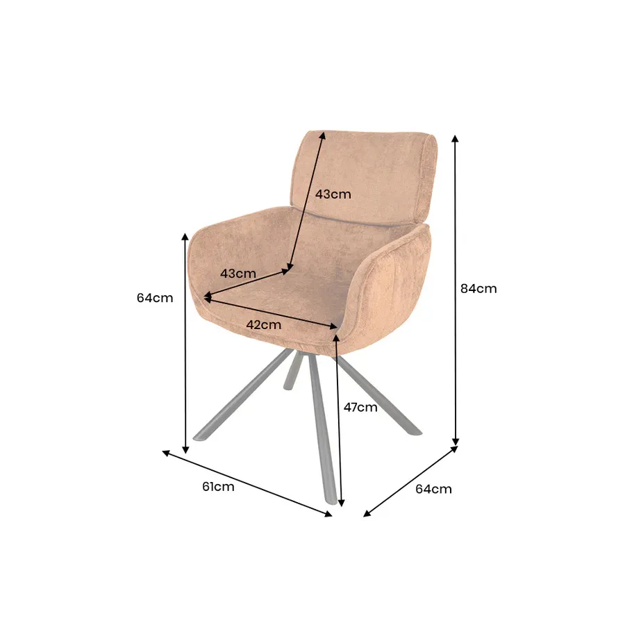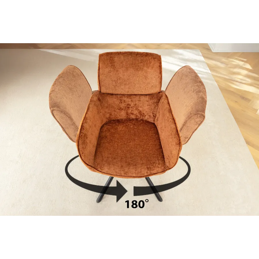 Invicta Krzesło obrotowe UNIQUE 180°z podłokietnikami rdzawy brąz tkanina szenilowa 64 x 84 x 61cm / 46319