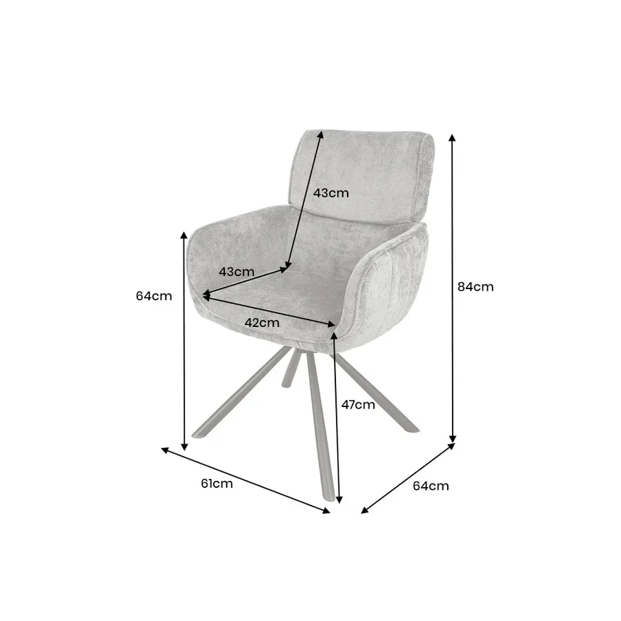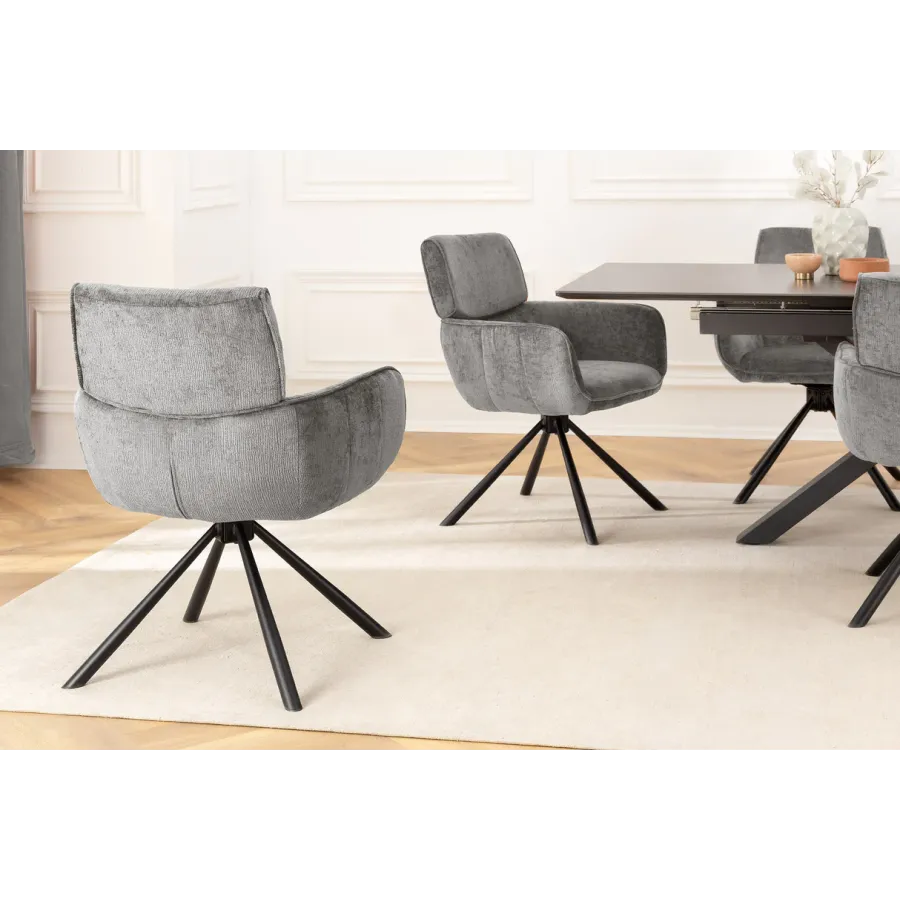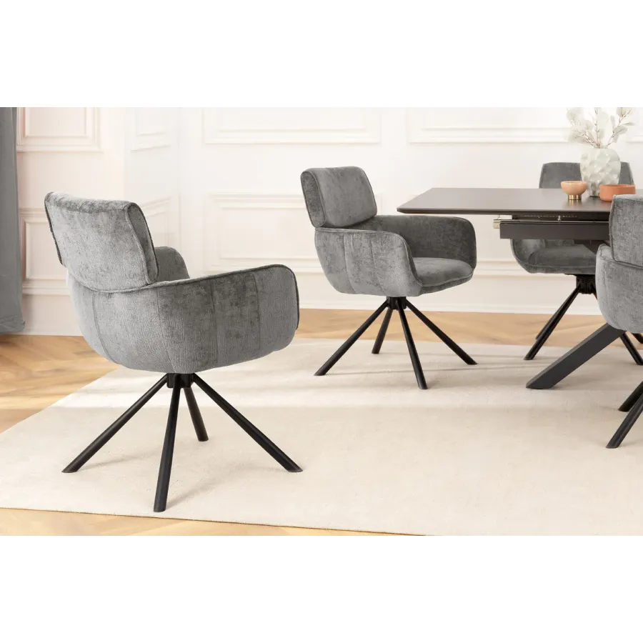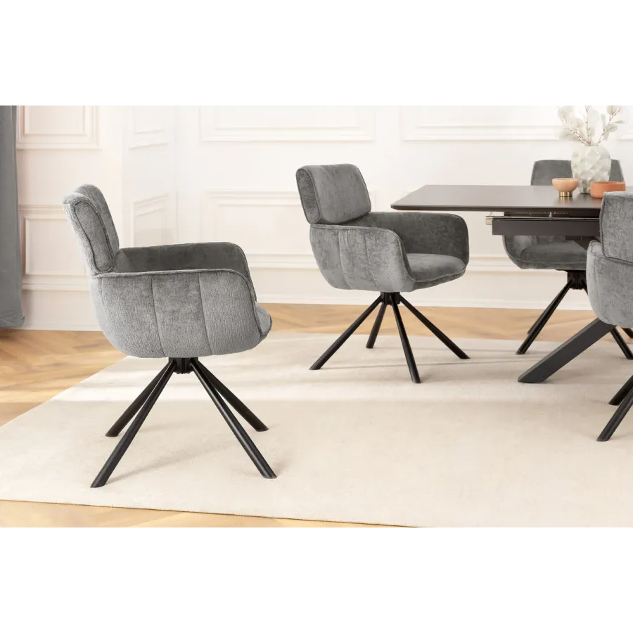Invicta Krzesło obrotowe UNIQUE 180°z podłokietnikami szara tkanina szenilowa 64 x 84 x 61cm / 46321