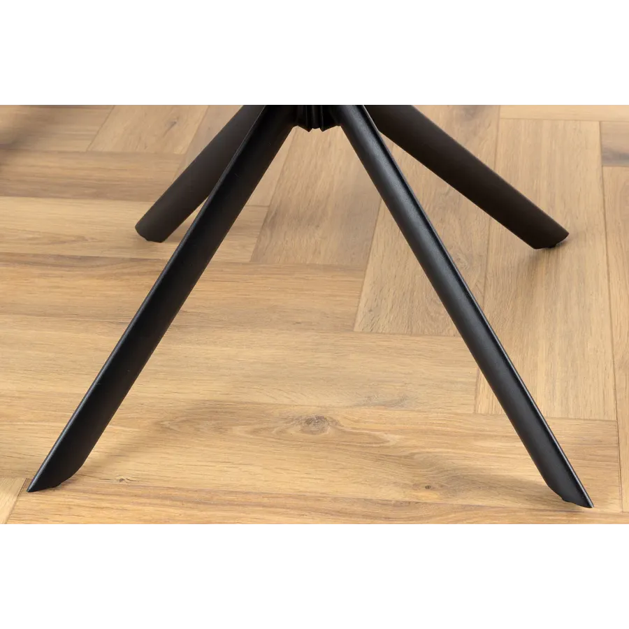 Stabilna podstawa z metalu inspirowana stylem retro doskonale podkreśla nietuzinkową sylwetkę krzesła, a regulowane stopki gwarantują pewne ustawienie na każdej powierzchni – od parkietu, przez płytki, aż po dywan.