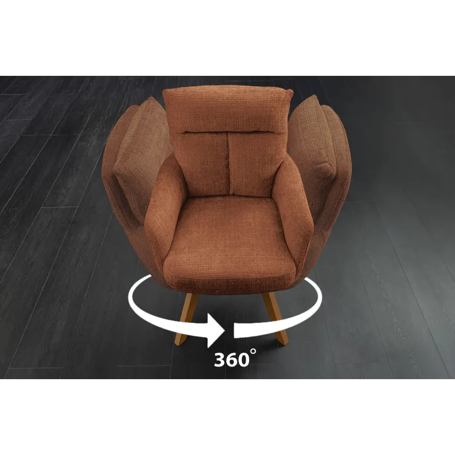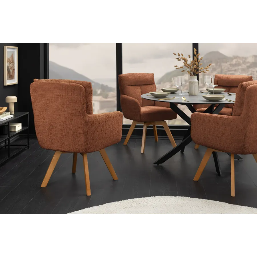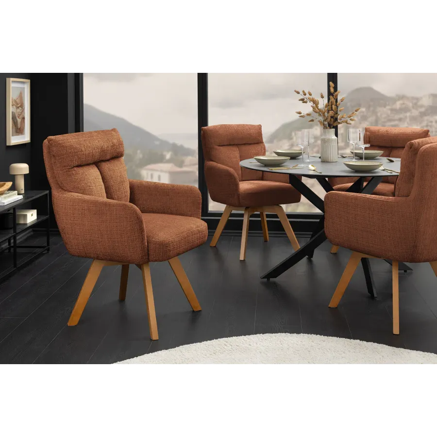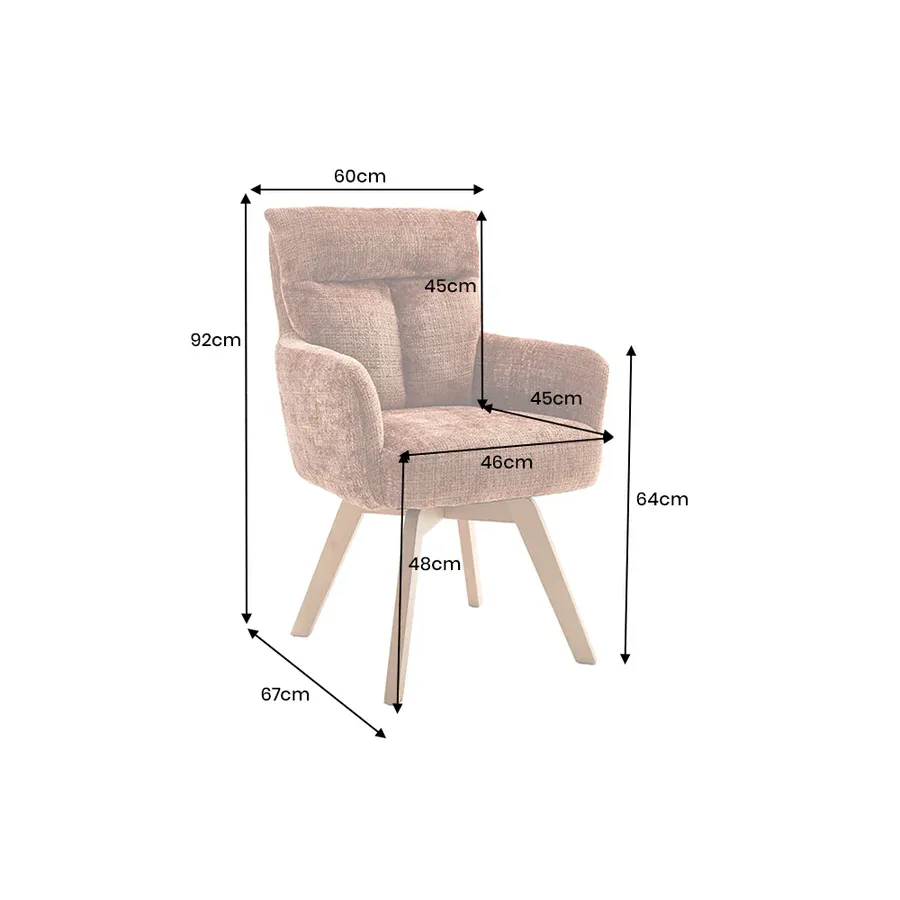 Invicta Krzesło tapicerowane BIG GEORGE 360° z podłokietnikami w tkaninie szenilowej to uroczy fotel łączy nowoczesny komfort z naturalnym urokiem. Wygodnie wyściełane, obrotowe siedzisko o 360° pokryte jest miękką tkaniną szenilową, której delikatna faktura zapewnia wyjątkowo przyjemne uczucie. Wysokiej jakości sprężyny Bonnell w siedzisku zapewniają długotrwały komfort. Dekoracyjne przeszycia w kształcie litery T dodają oparciu wyjątkowego stylu. Elegancka rama z litego drewna bukowego w dębowym wykończeniu ociepla wnętrze – zintegrowane filcowe ślizgacze chronią podłogę i umożliwiają płynne przesuwanie.