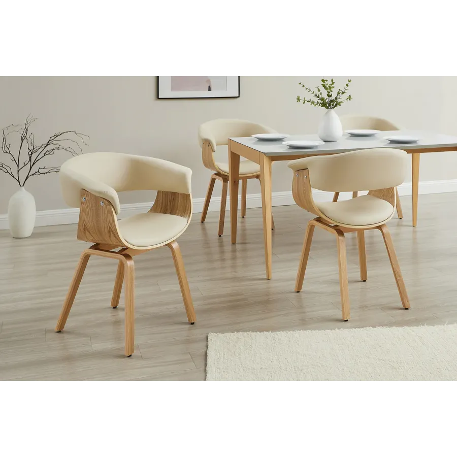 Krzesło ORGANIC wyróżnia się delikatnie profilowanym siedziskiem i oparciem, które doskonale dopasowują się do sylwetki, zapewniając wyjątkowy komfort siedzenia. Tapicerka z ekoskóry w odcieniu [tu wpisz kolor: np. beżowym, szarym, karmelowym] dodaje wnętrzu elegancji, a przy tym jest łatwa w utrzymaniu czystości.