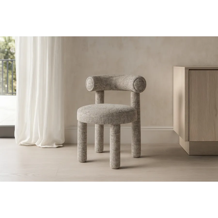 Nowoczesne krzesło tapicerowane wielokolorowe wykonane z najwyższej jakości tkaniny szenilowej. Prosta forma oparta jest na modnych obłych kształtach a konstrukcja jest w pełni pokryta materiałem.