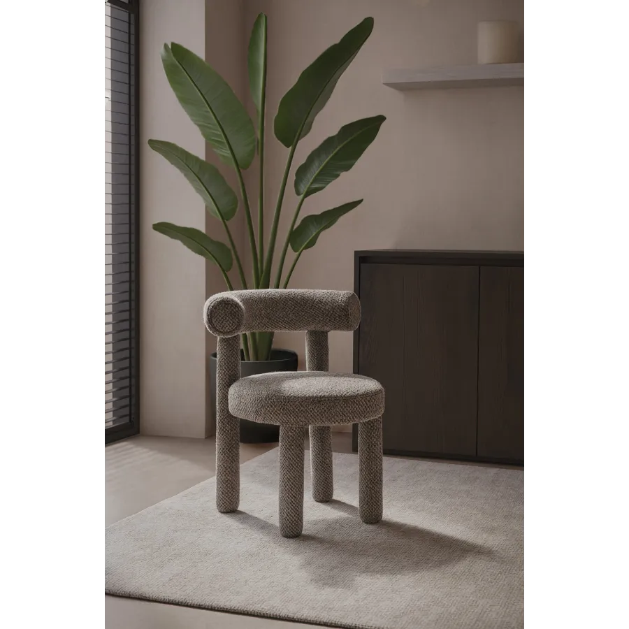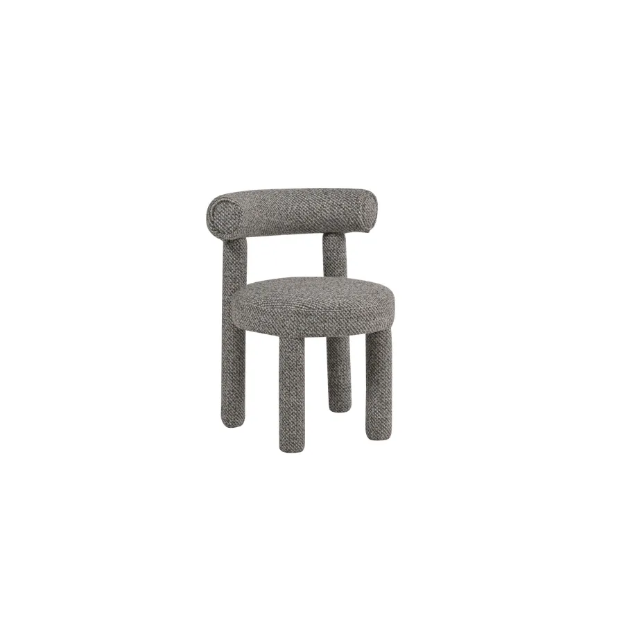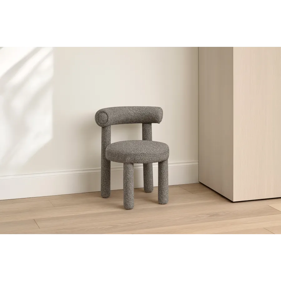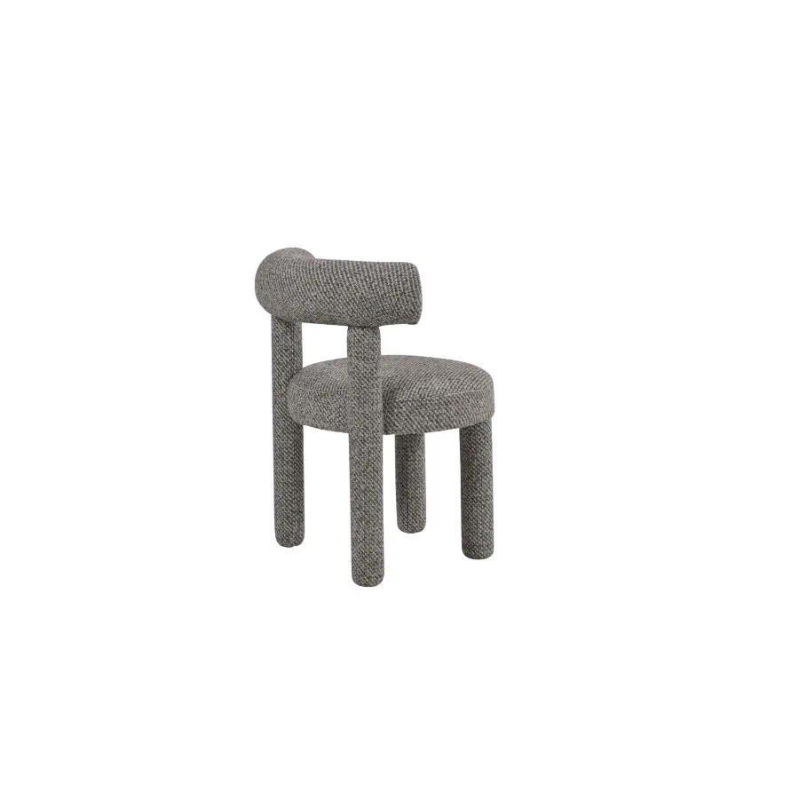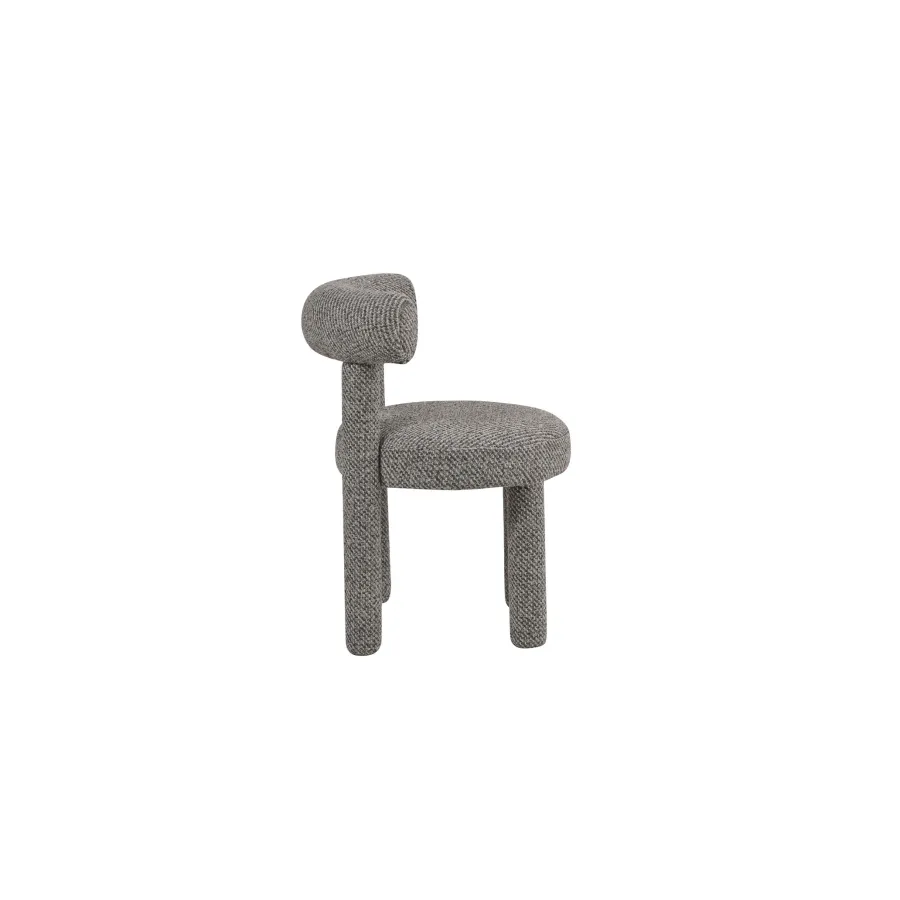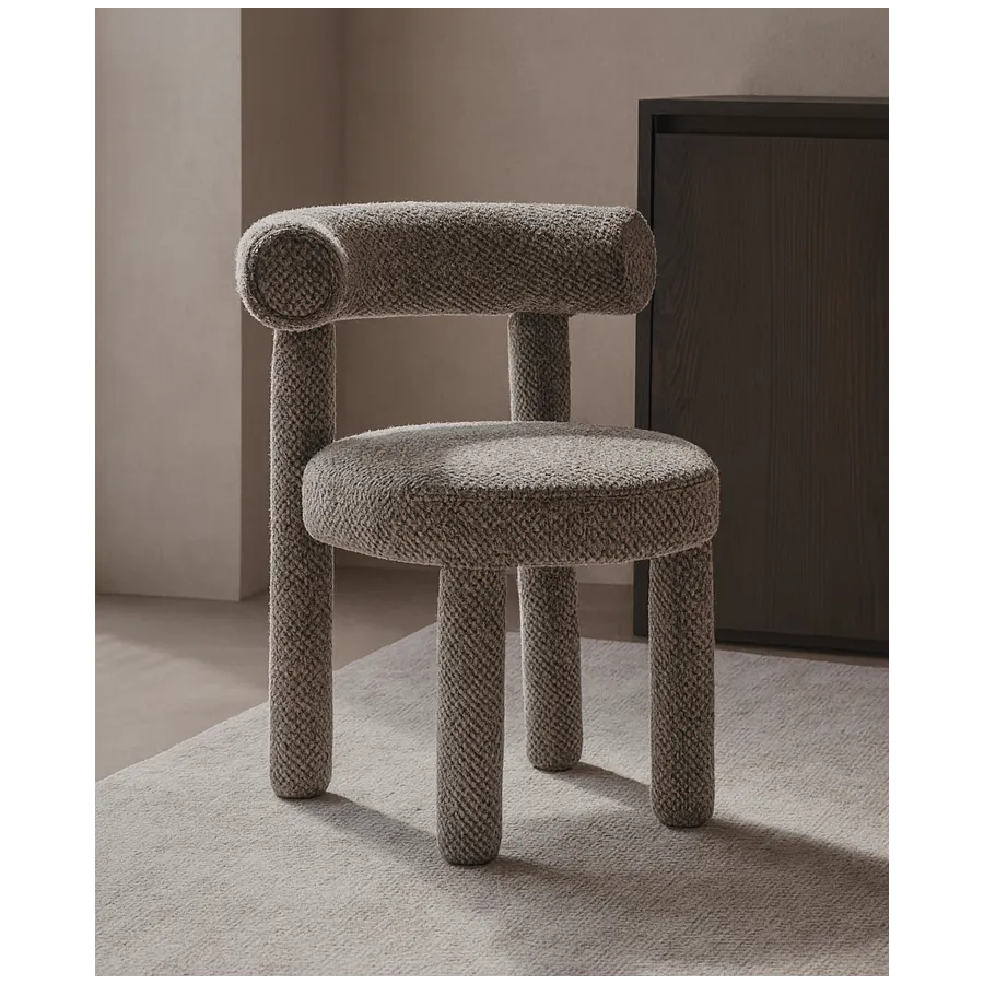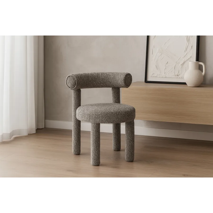 Nowoczesne krzesło tapicerowane w kolorze szarobrązowym wykonane z najwyższej jakości tkaniny. Prosta forma oparta jest na modnych obłych kształtach a konstrukcja jest w pełni pokryta materiałem.