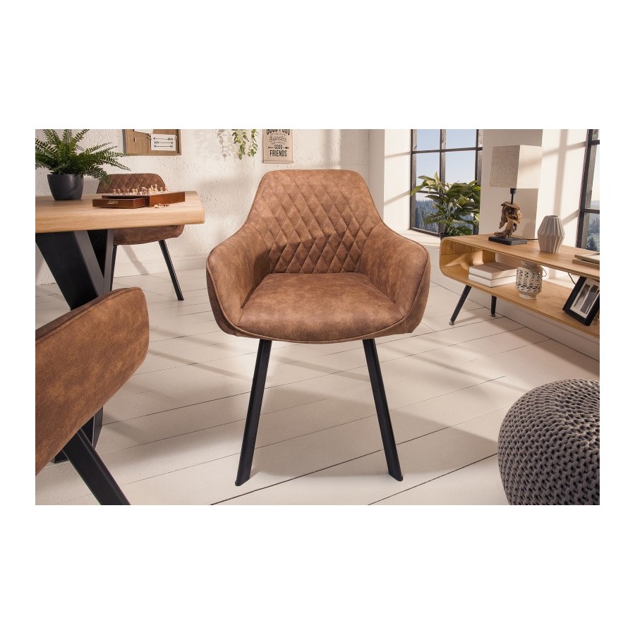 Invicta Krzesło PALERMO z podłokietnikiem mikrofibra jasnobrązowa 59cm / 39344