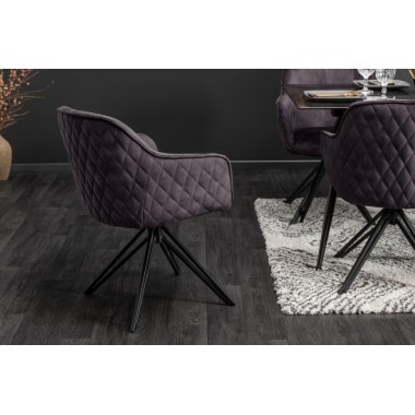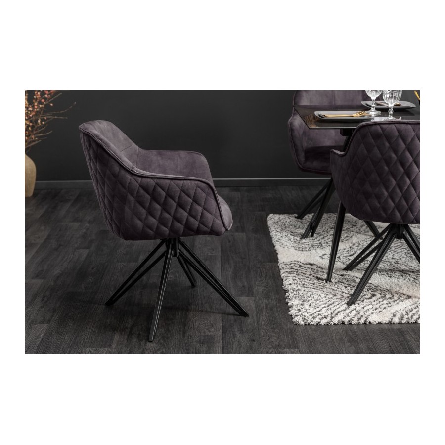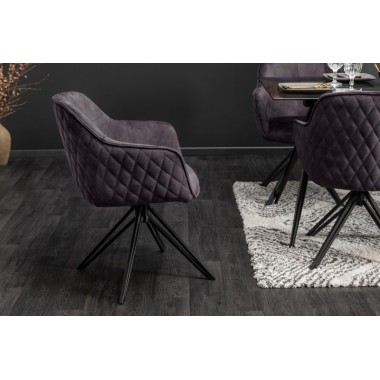 Invicta Krzesło EUPHORIA ciemno szary aksamitne obrotowe 180° / 40263