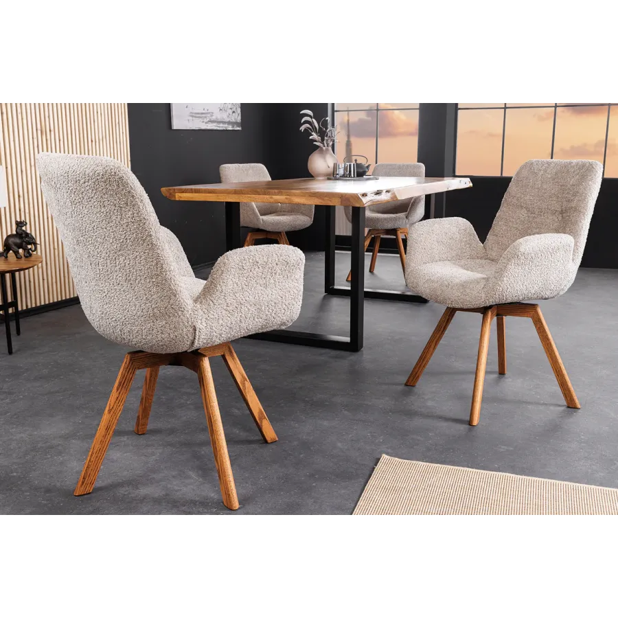 Zanurz się w komforcie i estetyce designerskiego krzesła obrotowego BALTIC. To krzesło do jadalni ze wspaniałym pokrowcem z pluszowej tkaniny w ciepłym beżu nie tylko stanowi wizualny akcent, ale także stanowi wyraźny wyraz skandynawskiego designu. Nogi krzesła z naturalnego dębu dodają stabilności i nuty nordyckiej elegancji.
