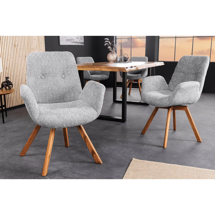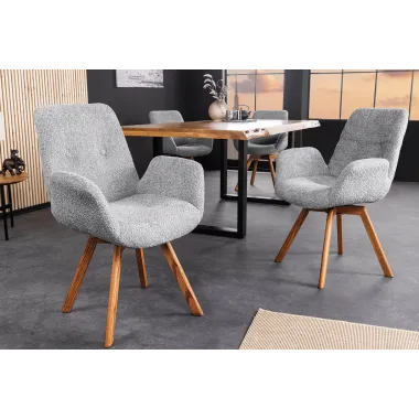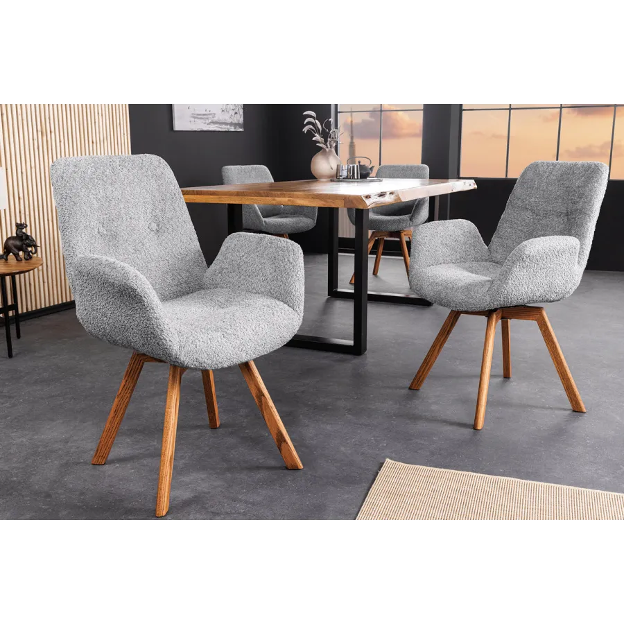 Zanurz się w komforcie i estetyce designerskiego krzesła obrotowego BALTIC. To krzesło do jadalni ze wspaniałym pokrowcem z pluszowej tkaniny w ciepłym beżu nie tylko stanowi wizualny akcent, ale także stanowi wyraźny wyraz skandynawskiego designu. Nogi krzesła z naturalnego dębu dodają stabilności i nuty nordyckiej elegancji.