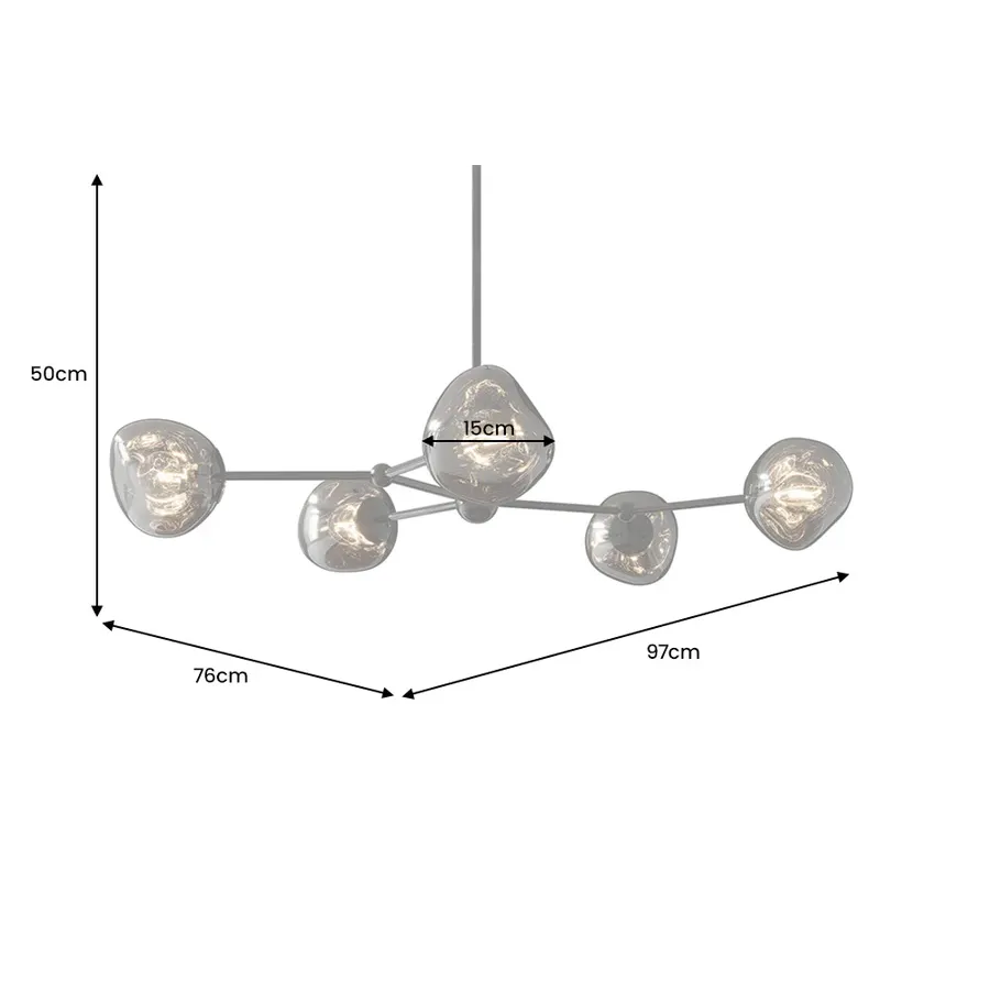 Invicta Lampa wisząca LIQUID DIAMOND 5 szklanych kloszy w kolorze szarym / 46021