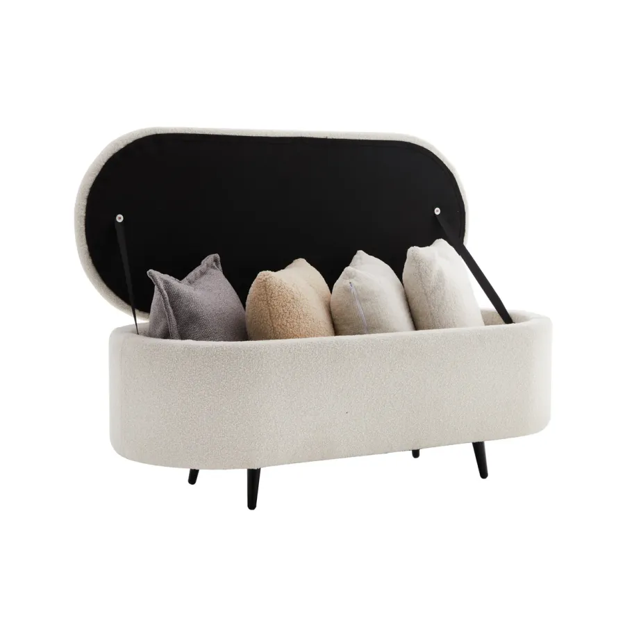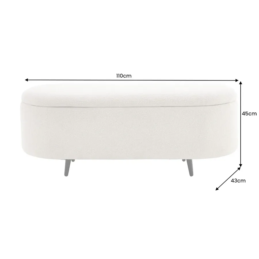 Invicta Ławka do siedzenia VOQUE kremowo-białe bouclé 110cm / 45255