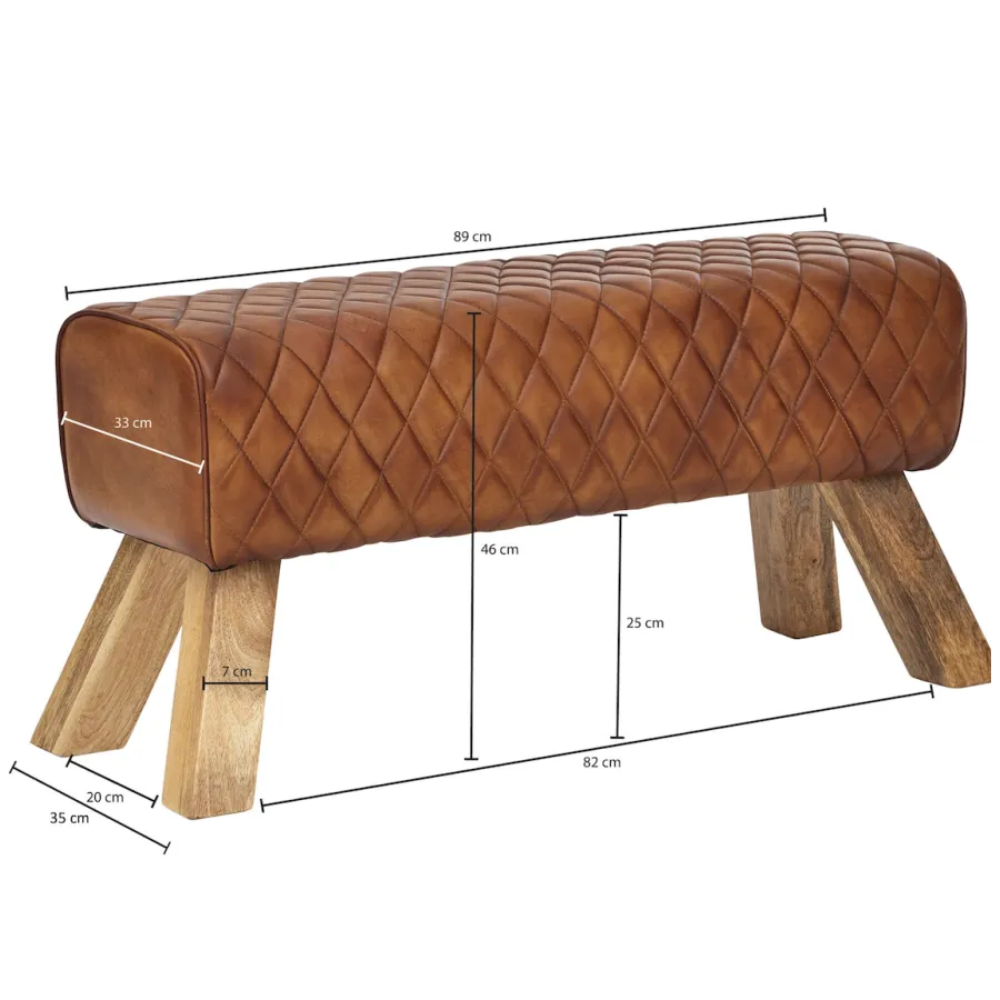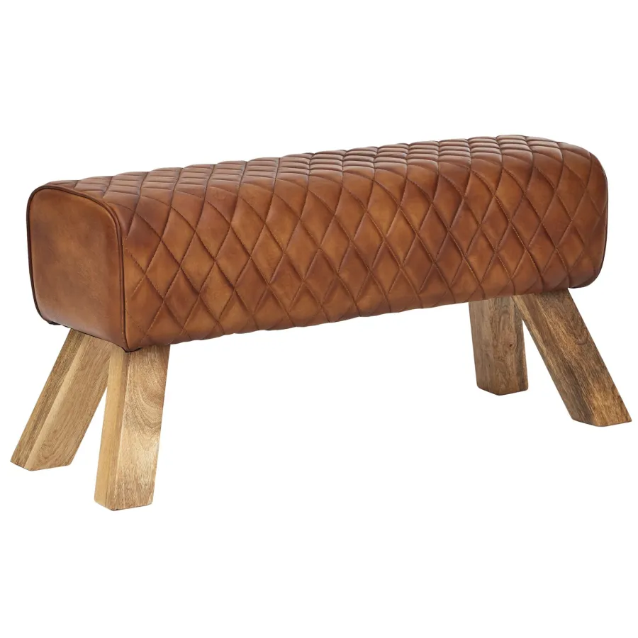 WOHNLING Ławka do siedzenie skóra naturalna brązowa 89 x 46 x 35cm / WL6.089
