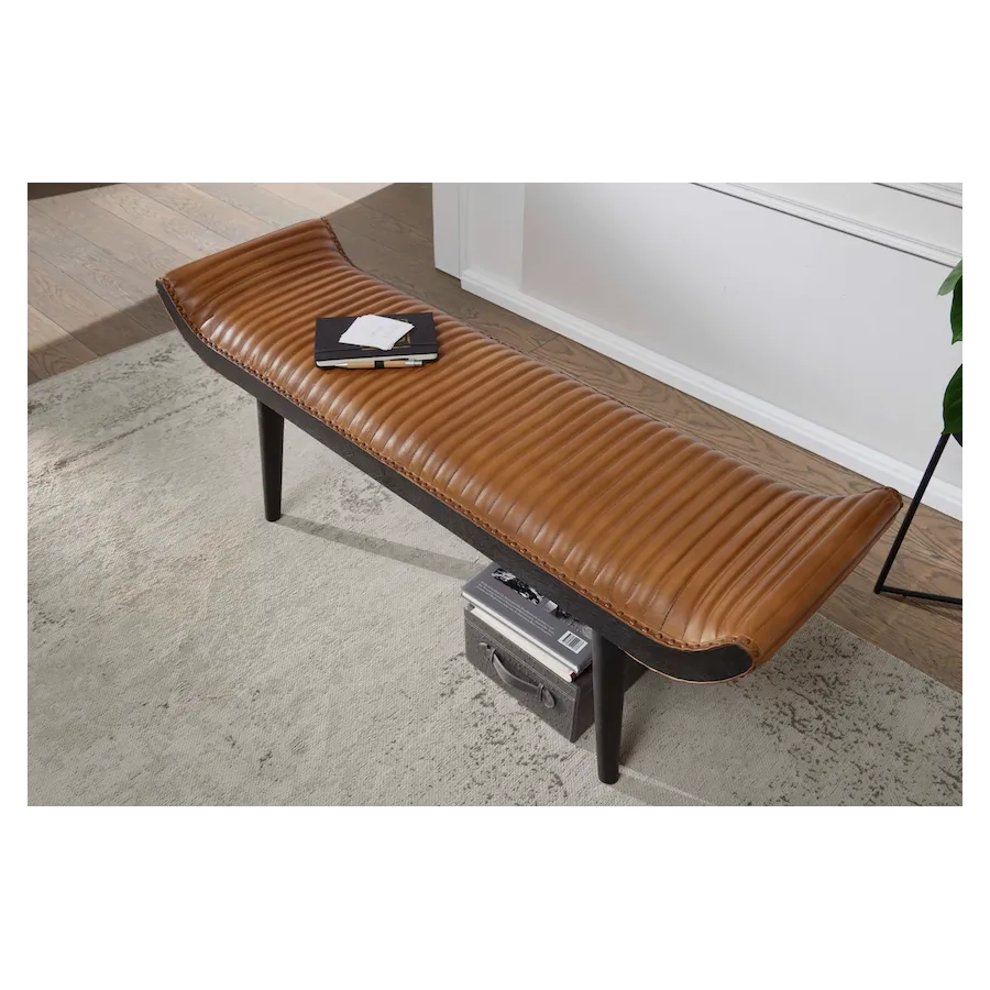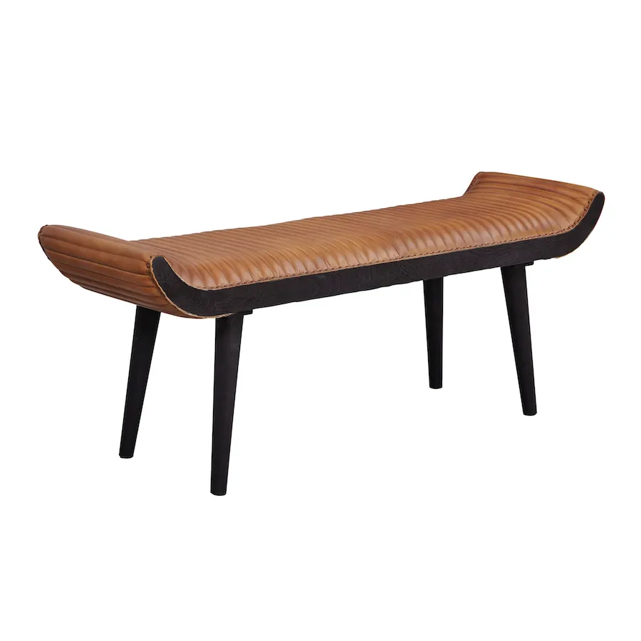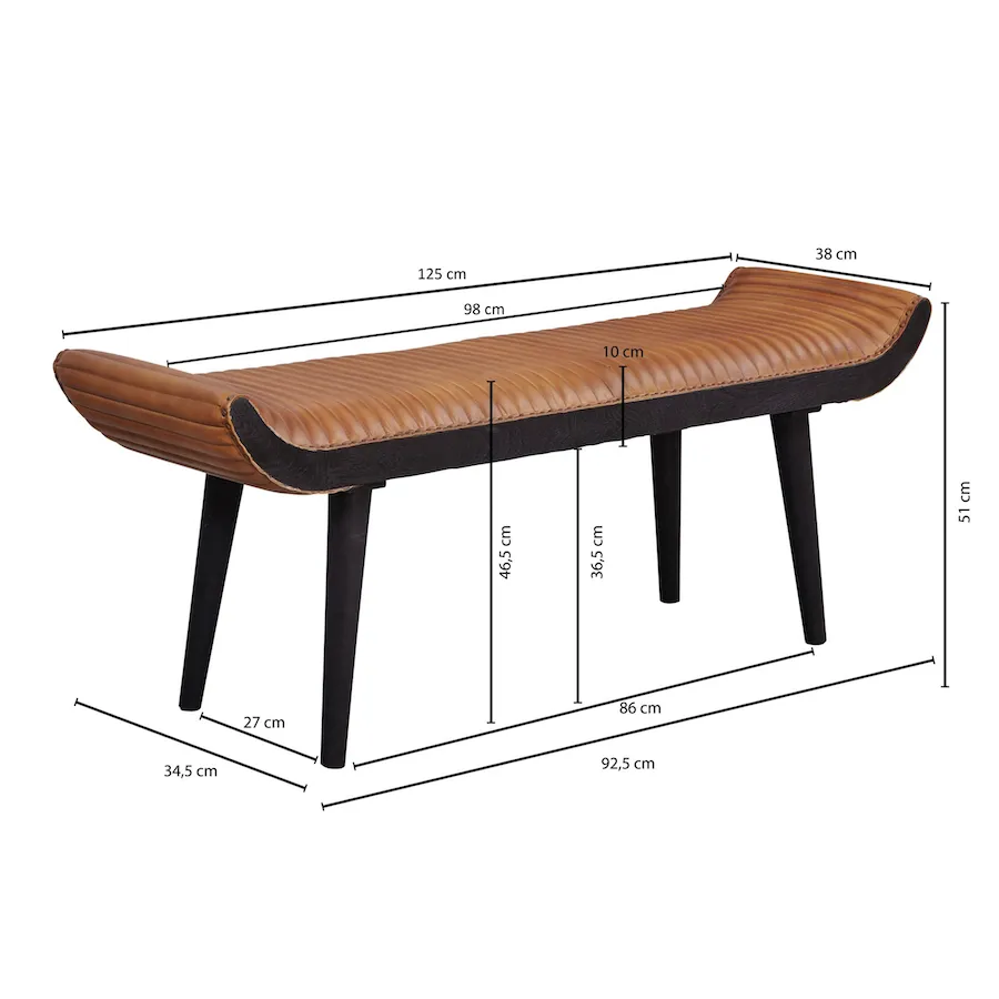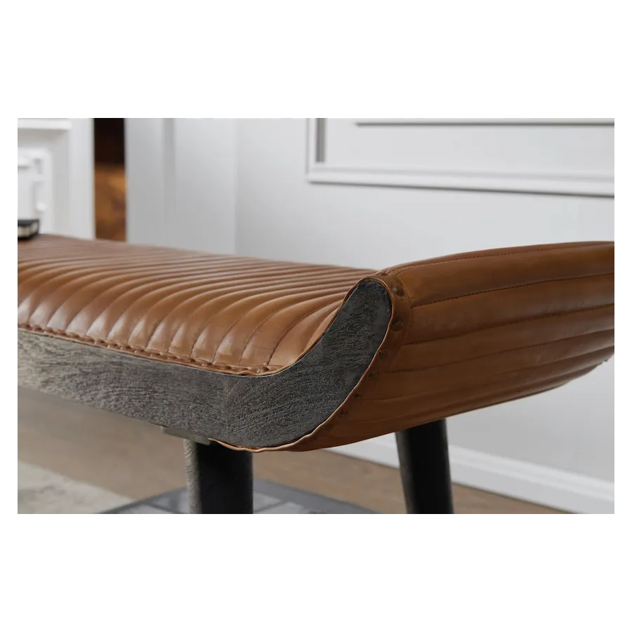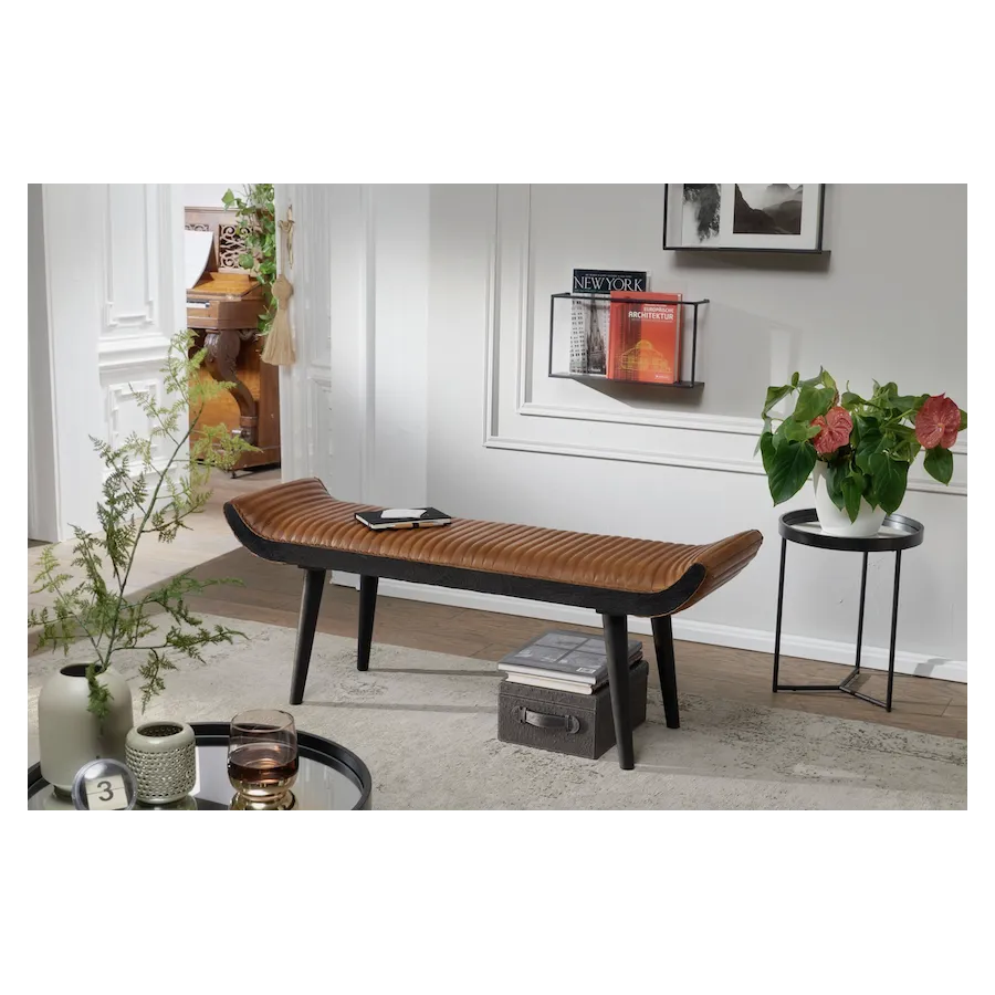 WOHNLING Ławka do siedzenie skóra naturalna brązowa nogi czarne 125 x 50 x 38cm / WL6.014