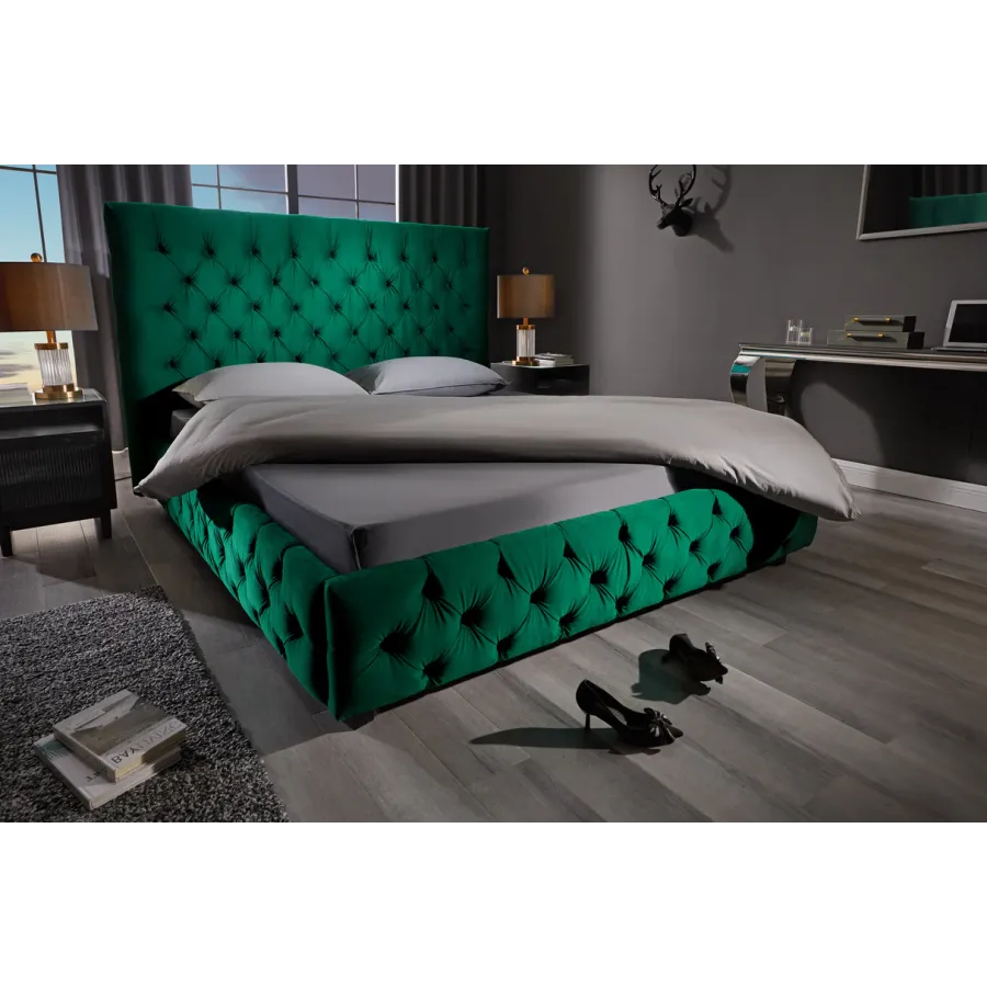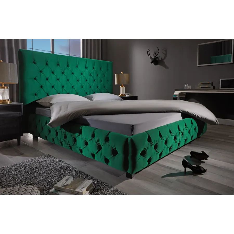 Invicta Łóżko PARIS szmaragdowo zielony aksamit 180x200cm / 41336