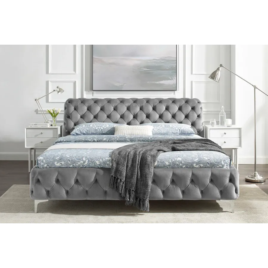 Invicta Łóżko MODERN BAROCK szary aksamit 180 x 200cm / 46162