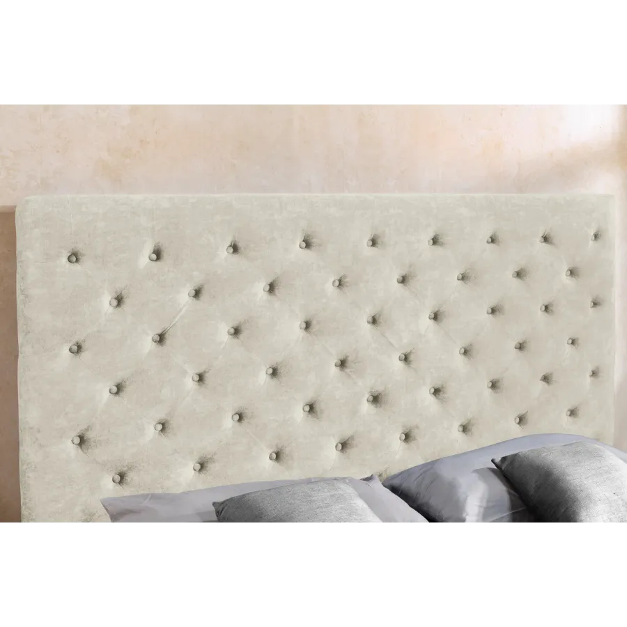 To wyjątkowe łóżko skrzyniowe zachwyca miękkim, aksamitnym obiciem w odcieniu szampańskiego beżu czy szarości oraz klasycznym pikowaniem w stylu Chesterfield, które nadaje mu ponadczasowy urok i szyk.