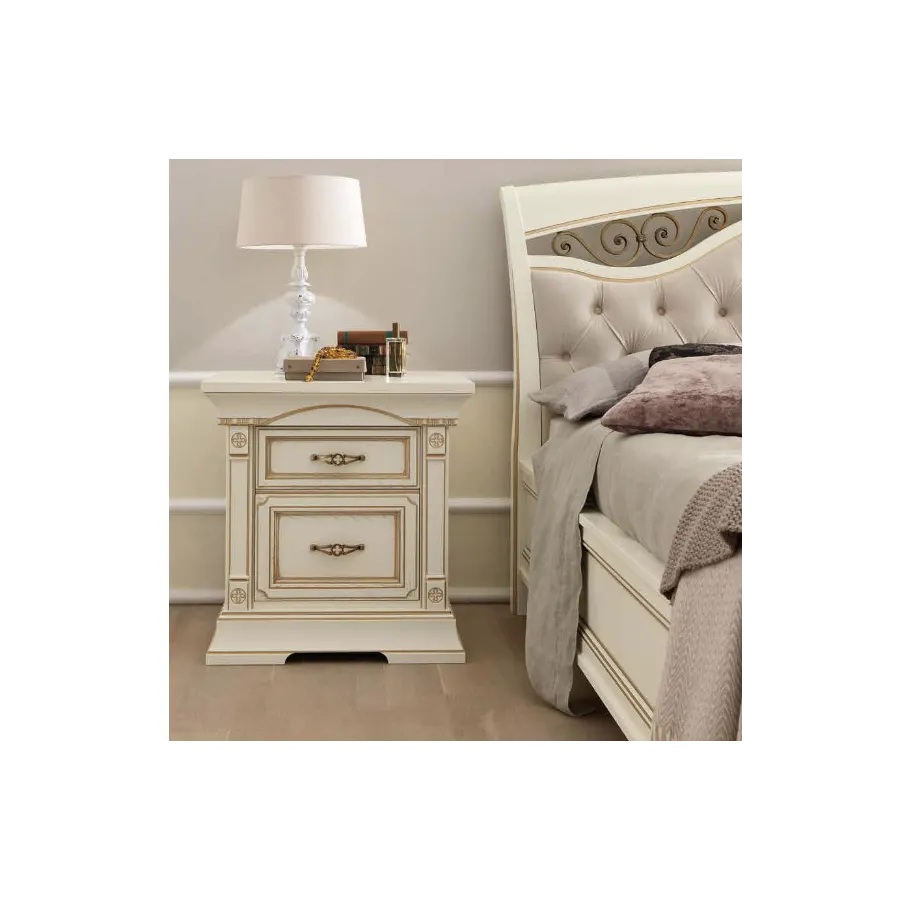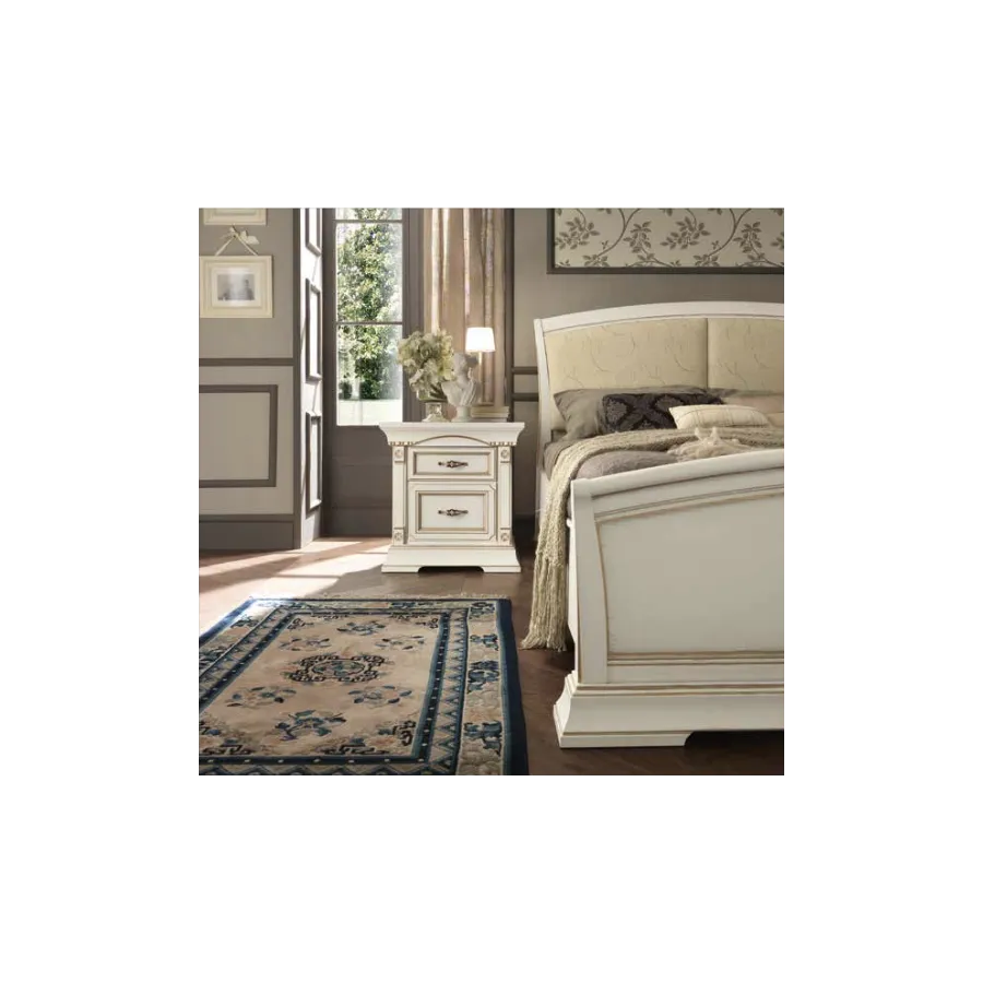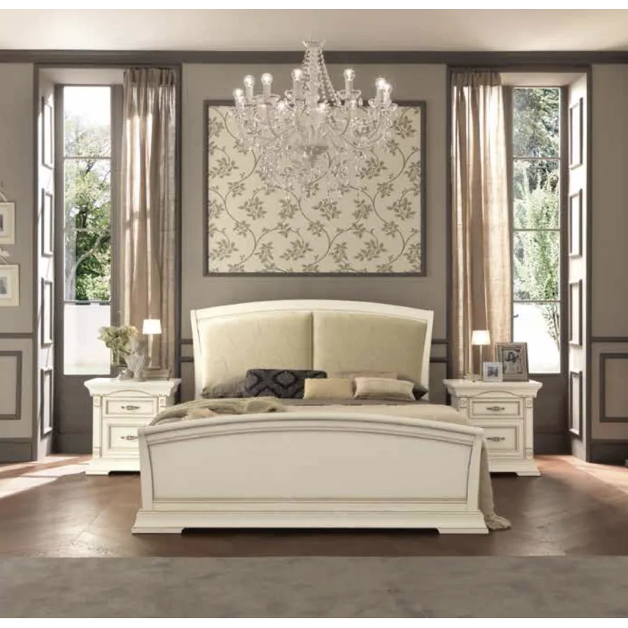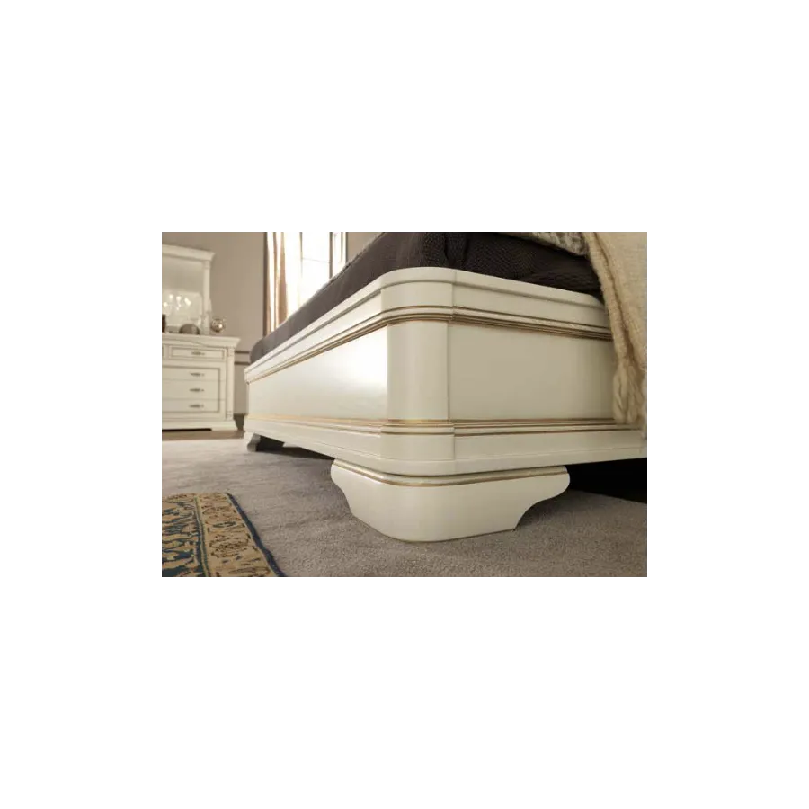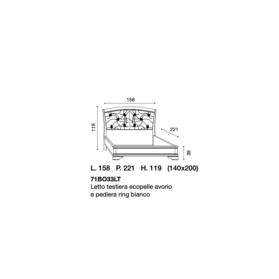 PALAZZO DUCALE ECRU Włoskie Łóżko tapicerowane wezgłowie eco skóra niski podnóżek 140 x 200cm / 71BO33LT