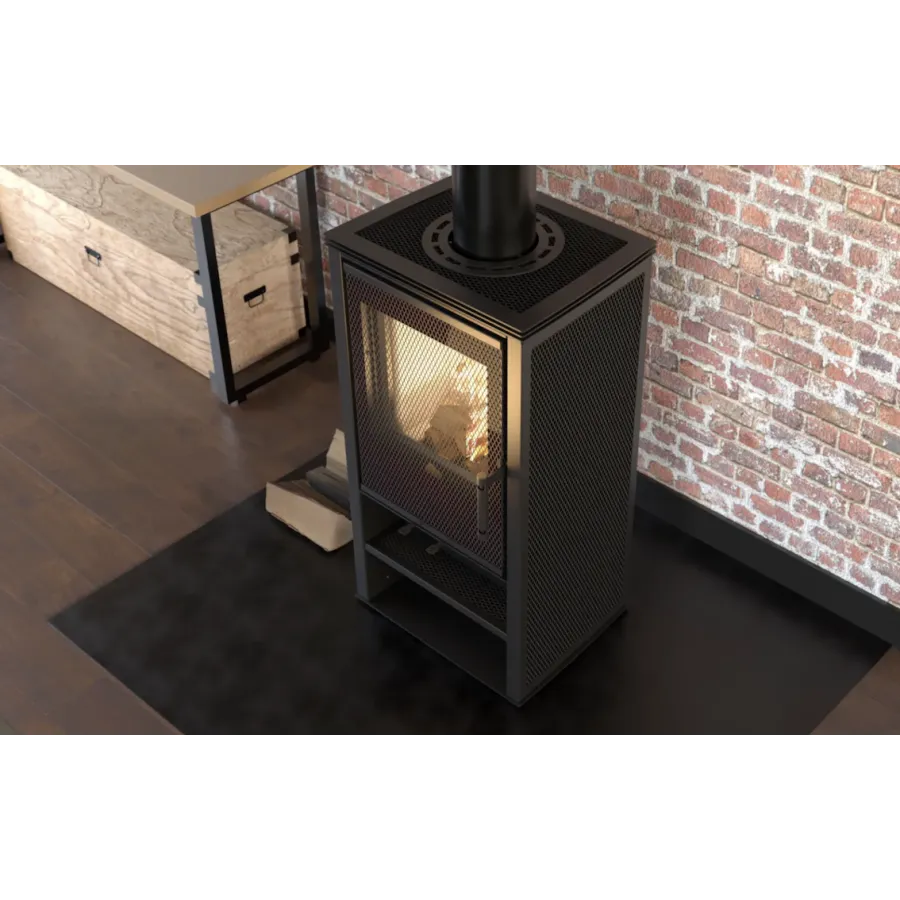 LUPO S LOFT to nowoczesna wersja kompaktowego pieca na drewno z możliwością konfiguracji perforowanych paneli (front, boki, góra). Kominek łączy industrialny styl z wysoką sprawnością cieplną i technologią czystego spalania. Idealny do wnętrz z rekuperacją.