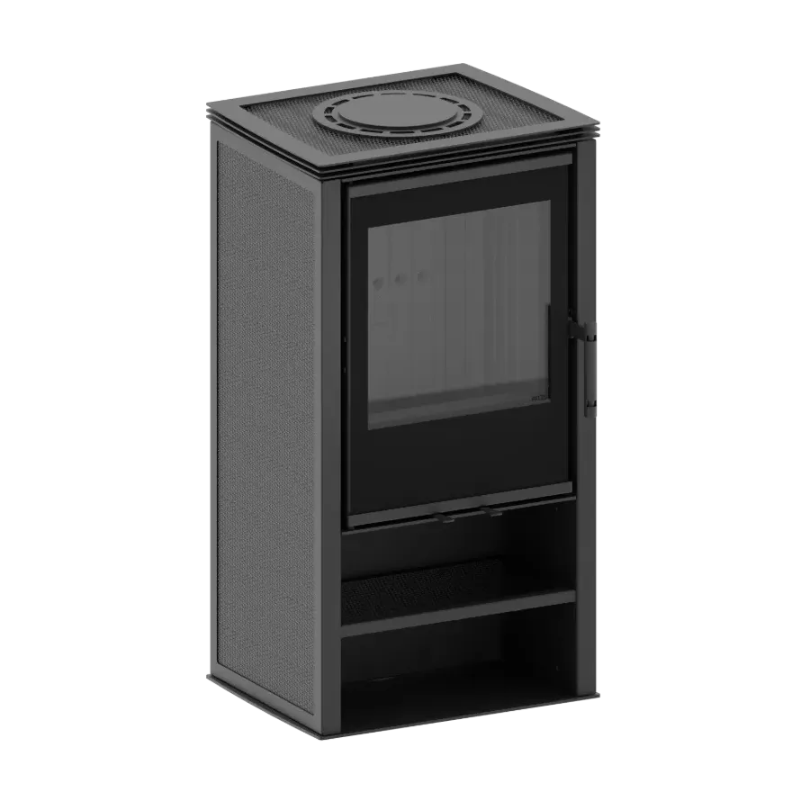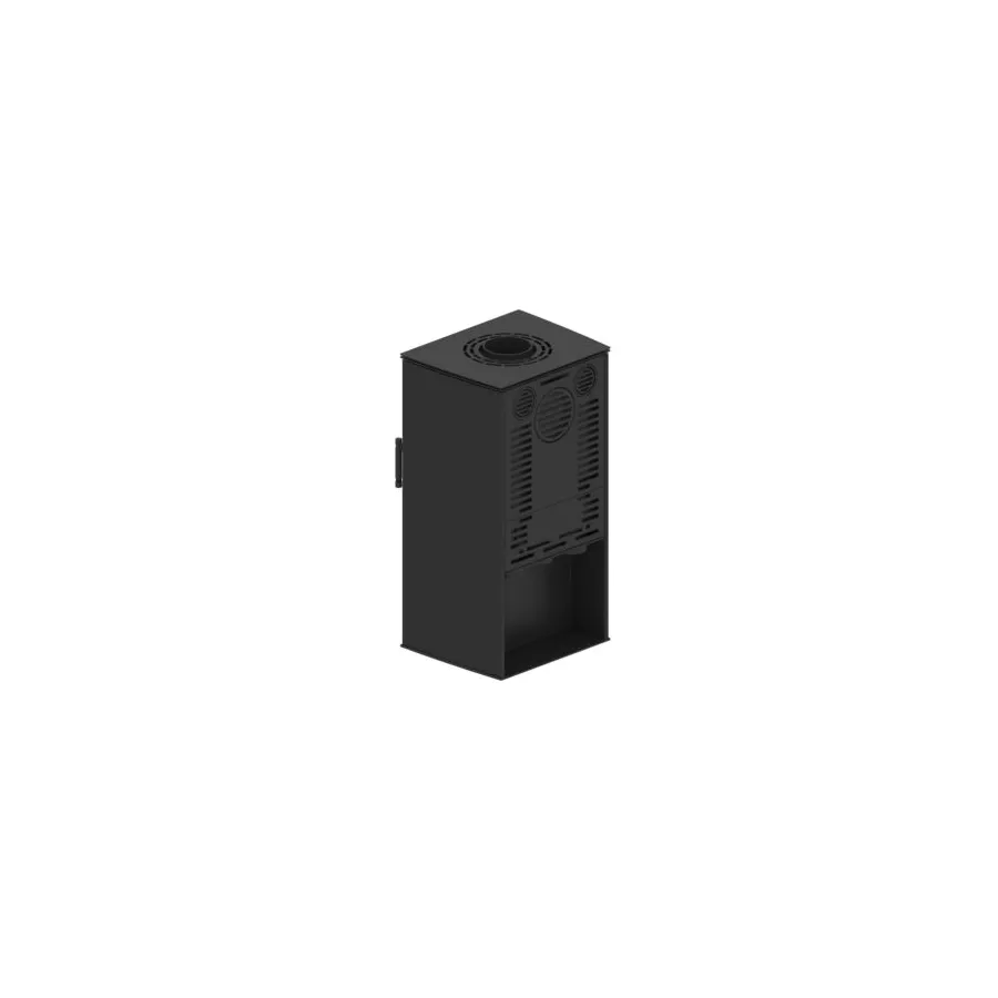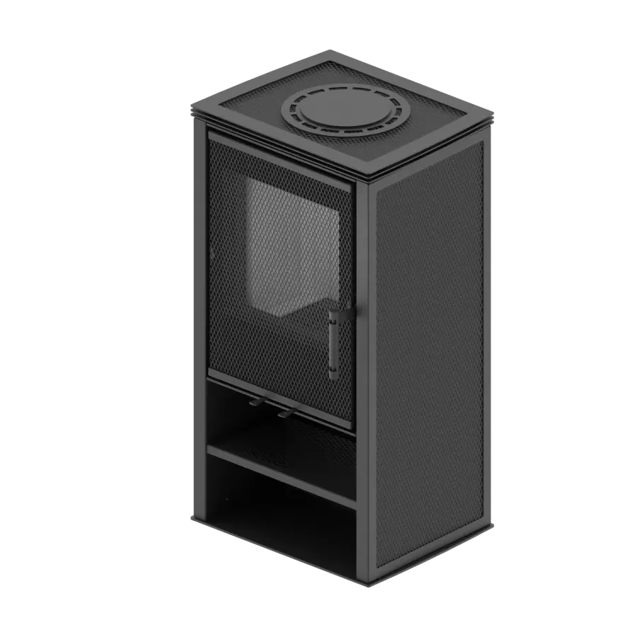 Największą zaletą tego modelu jest możliwość personalizacji wyglądu obudowy. Dzięki wymiennym panelom z perforowanej stali dopasujesz styl pieca do swojego wnętrza — możesz zastosować ażurowe wykończenie na froncie, bokach, górze lub stworzyć własną kombinację.