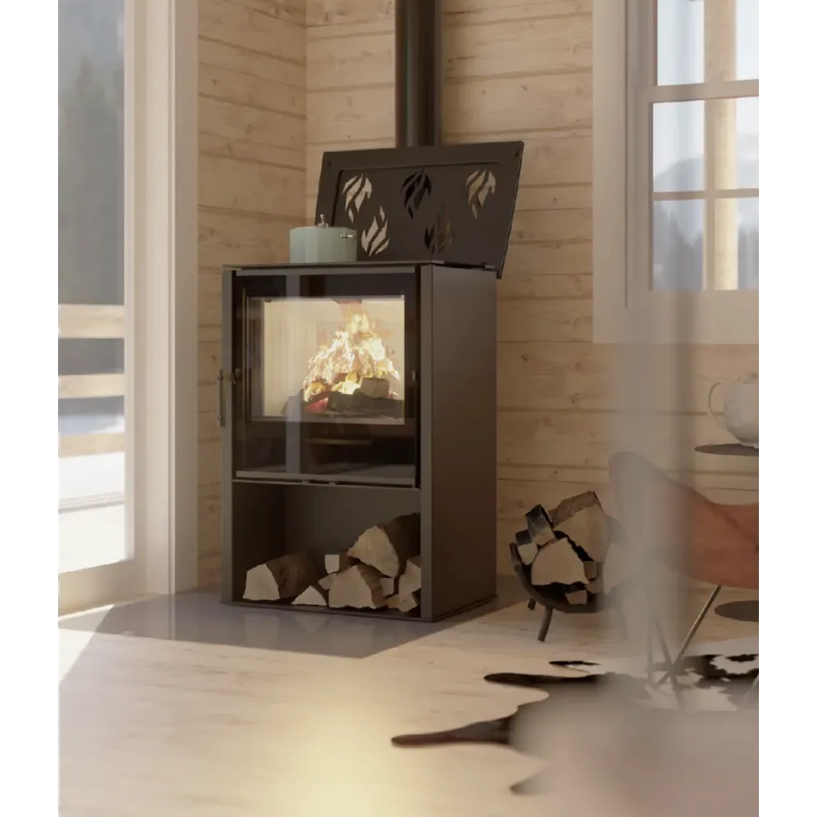 LUPO M to wolnostojący piec na drewno, który łączy wysoką sprawność cieplną z ekonomicznym spalaniem sezonowanego drewna. W serii LUPO model M zajmuje miejsce pośrodku pod względem wielkości i parametrów — oferuje moc nominalną 9 kW, dzięki czemu jest idealnym wyborem do pomieszczeń średniej wielkości.