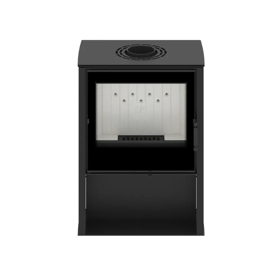 Trwały żeliwny ruszt oraz duży, łatwy do wyjęcia popielnik ułatwiają codzienne czyszczenie. Piec umożliwia podłączenie wylotu spalin zarówno od góry, jak i z tyłu, co pozwala dopasować go do różnych aranżacji wnętrza.