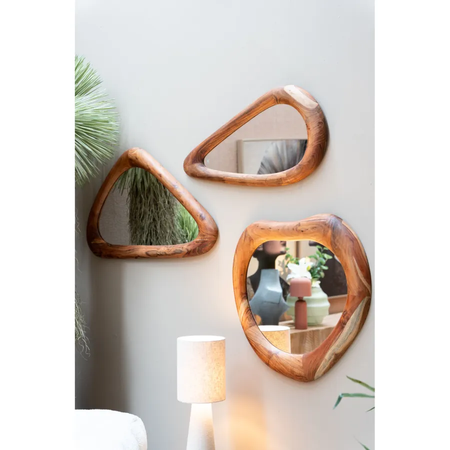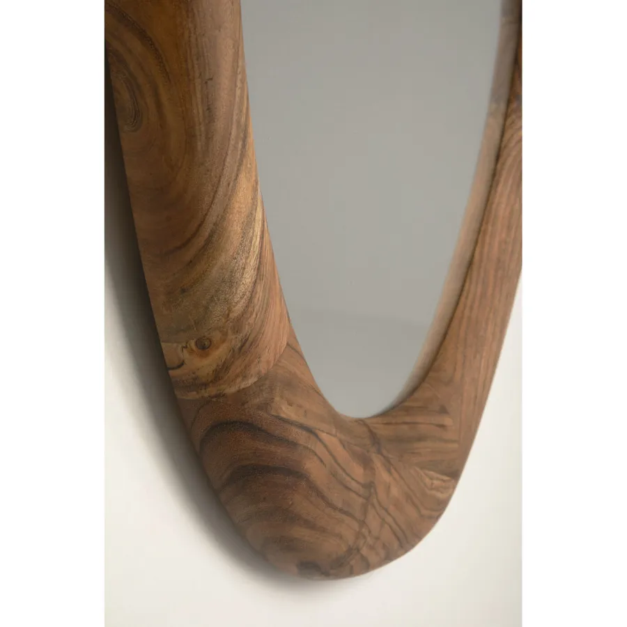 Lustro, które może więcej niż tylko odbijać – to połączenie naturalnej estetyki z nowoczesnym charakterem. Zaokrąglony, organiczny kształt stanowi stylowe akcenty, a rama z litego drewna akacjowego o wyrazistym usłojeniu dodaje ciepła i charakteru. Idealne do minimalistycznych aranżacji, skandynawskiej przytulności lub miejskiego loftu z naturalnymi elementami. Czy to jako przyciągający wzrok element w strefie wejściowej, stylowy dodatek nad konsolą, czy harmonijny akcent w sypialni – otwiera przestrzeń, przyciąga światło i dodaje głębi atmosferze. Szczególnie elegancko prezentuje się w połączeniu z lnianymi tkaninami, rattanowymi dekoracjami lub delikatnymi kolorami ziemi.