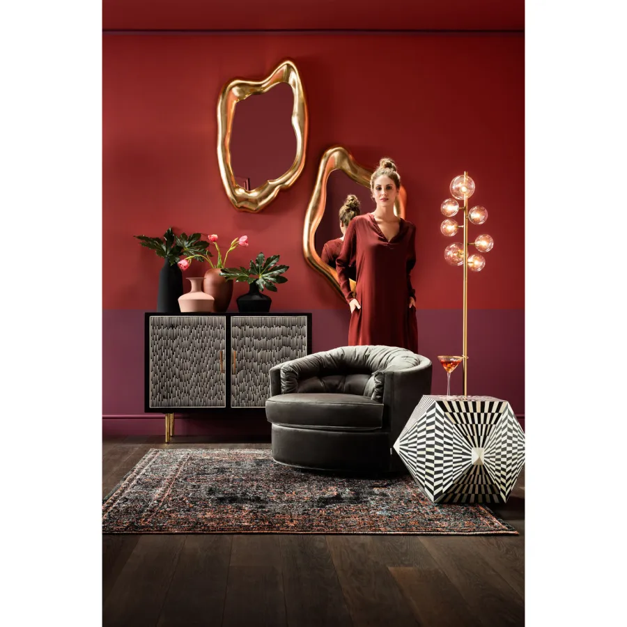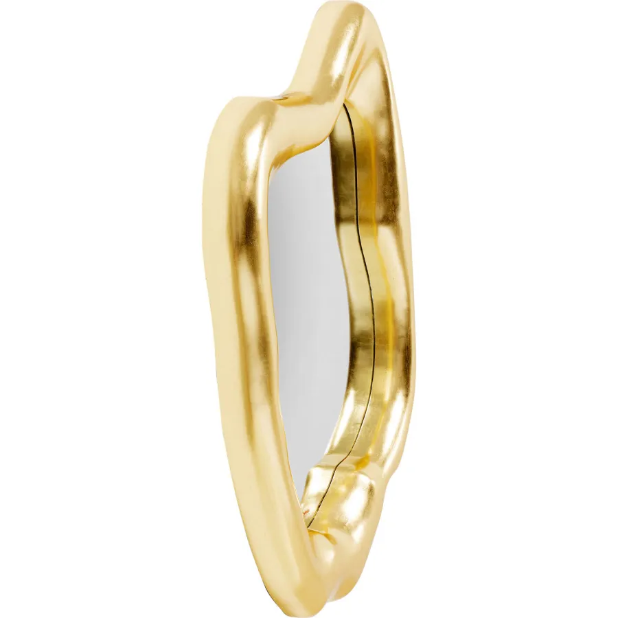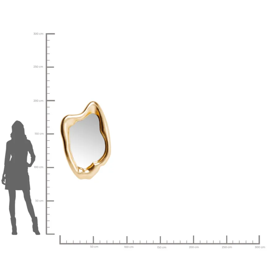 Ani okrągłe, ani kanciaste: to lustro fascynuje swoją organiczną formą. Ułożone parami na kolorowej ścianie, wyglądają jak mała instalacja artystyczna.