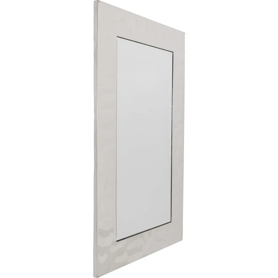 To lustro ścienne to prawdziwy hit designu, który wnosi światło, głębię i elegancję do każdego wnętrza. Lśniąca srebrna rama o trójwymiarowej strukturze tworzy ekscytujące akcenty i podkreśla wyrafinowany, nowoczesny styl. Wykonane z wysokiej jakości stali nierdzewnej, łączy ponadczasową estetykę z długotrwałą jakością. Niezależnie od tego, czy zamontujesz je poziomo, czy pionowo, w korytarzu jako przyciągający wzrok element, w sypialni jako stylowy dodatek, czy w salonie, aby zyskać więcej przestrzeni – to prawdziwy element dekoracyjny, który idealnie wpasuje się w nowoczesne, glamourowe lub minimalistyczne wnętrza.
