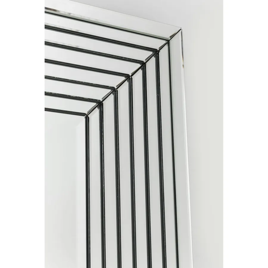 Lustro z klasą. To lustro ścienne robi wrażenie swoim prostym wyglądem i emanuje chłodem i elegancją. Wyrafinowana, schodkowa konstrukcja ramy zapewnia nowoczesną estetykę i dyskretną ekstrawagancję.