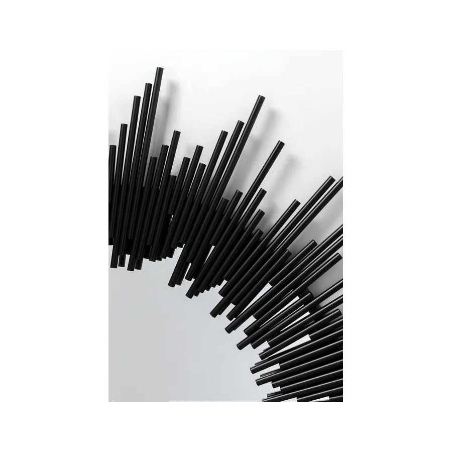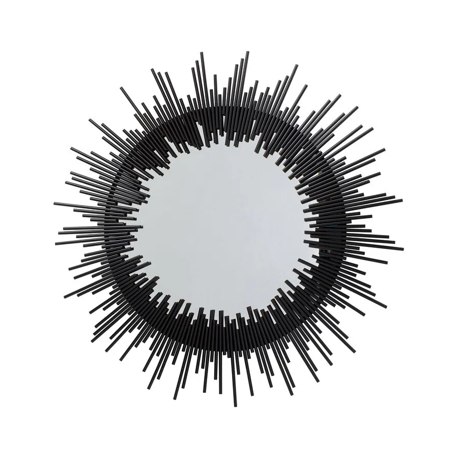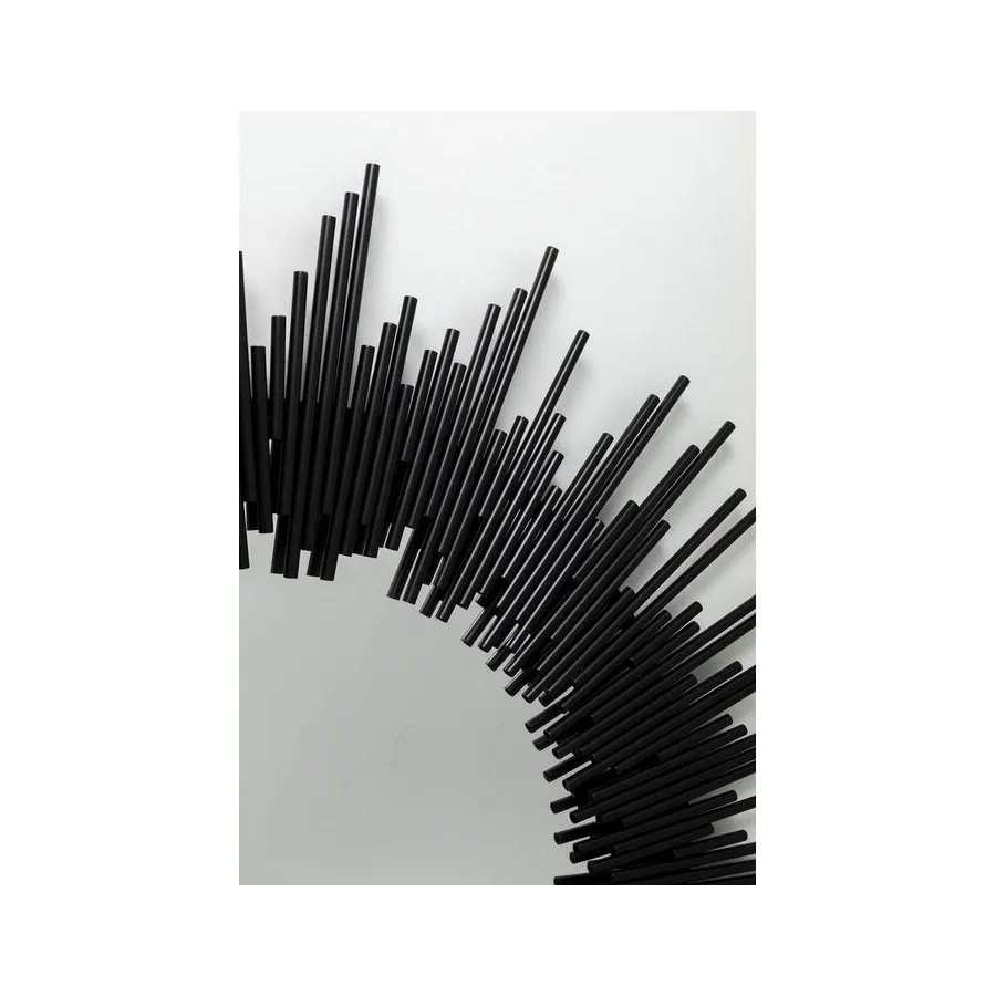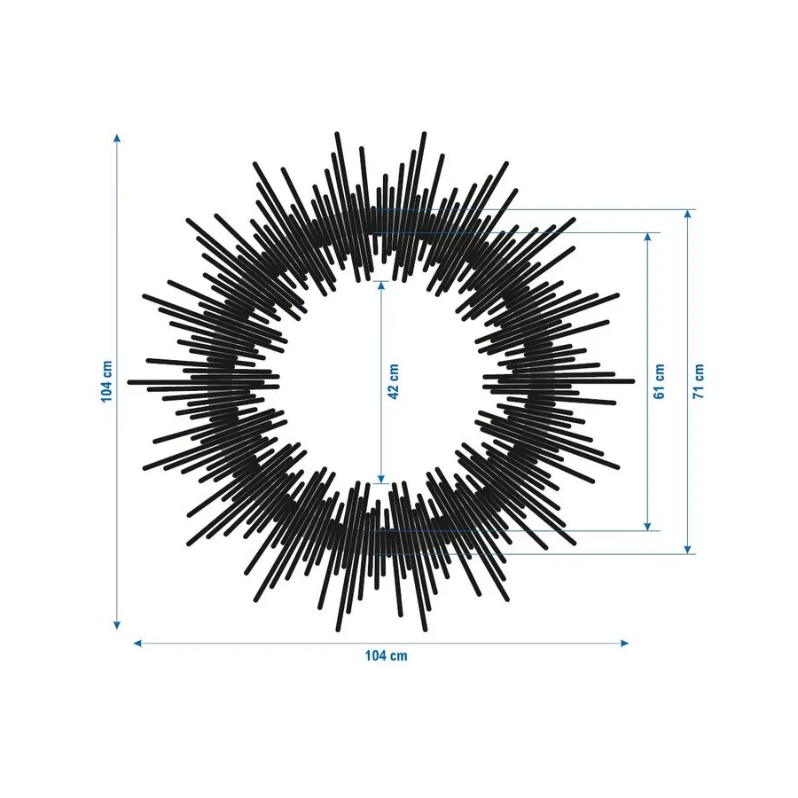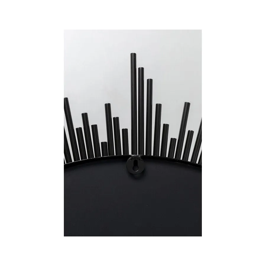 To czarne, metalowe lustro zachwyci miłośników designu! Okrągłe kształty idealnie pasują do mebli w kształcie skrzyń, takich jak kredensy, komody czy sofy w kształcie sześcianu. Wygląda to elegancko i tworzy harmonię w salonie. Dzięki średnicy 104 cm, to lustro ścienne ma również praktyczny rozmiar i sprawdzi się zarówno w nowym budynku, jak i w starych mieszkaniach. Jego styl można dowolnie interpretować, dostosowując do indywidualnych upodobań. Pasuje do nowoczesnych i minimalistycznych aranżacji wnętrz, doskonale podkreślając czarno-białe wnętrza. Jego unikatowy design pozwala jednak na łączenie go również z jasnymi meblami w nowoczesnym domu wiejskim lub z klasycznymi, designerskimi meblami.