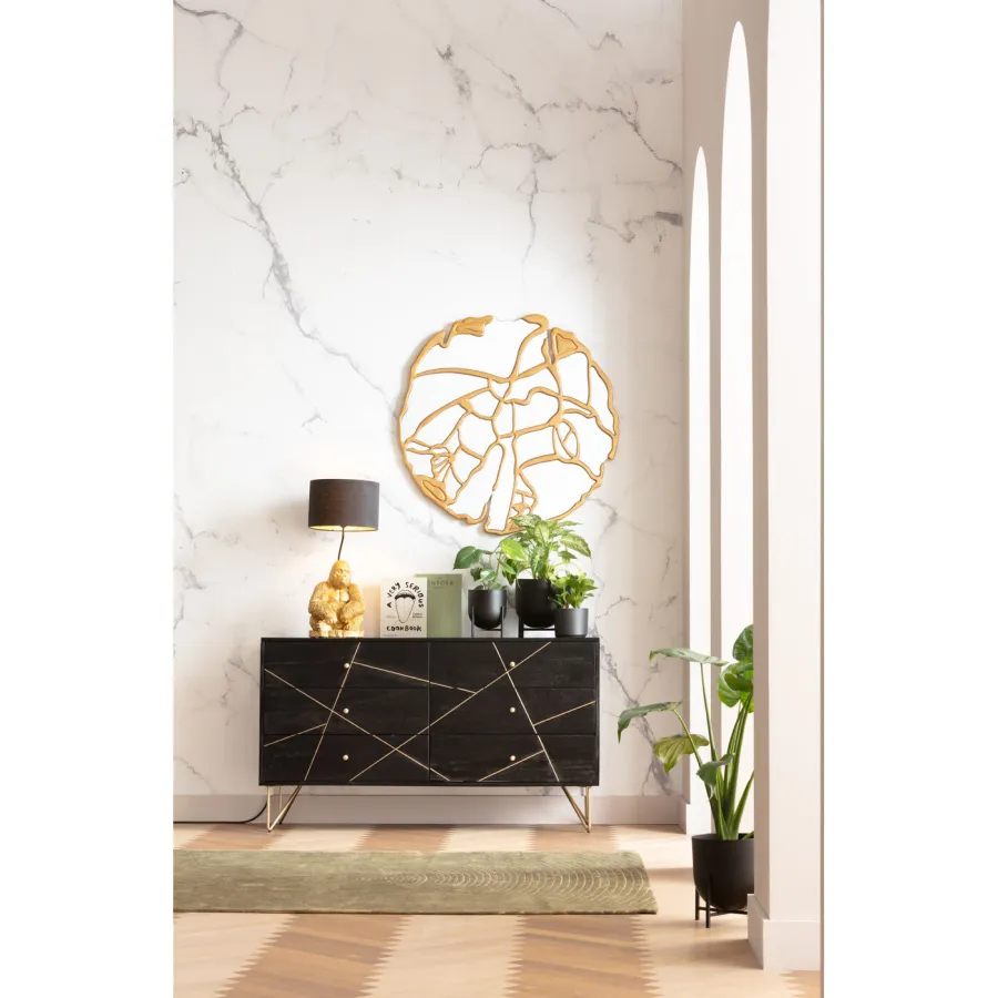 Trend ten nie ma końca: lustra coraz częściej pełnią rolę dekoracyjnych elementów ściennych. W tym modelu, niczym w mozaice, wiele małych lusterek tworzy dużą całość. Umieść to okrągłe lustro nad zestawem wypoczynkowym lub łóżkiem w sypialni, aby przyciągało wzrok. Możesz też połączyć lustro ścienne z konsolą w przedpokoju, aby stworzyć aranżację, która wzbudzi zazdrość gości.