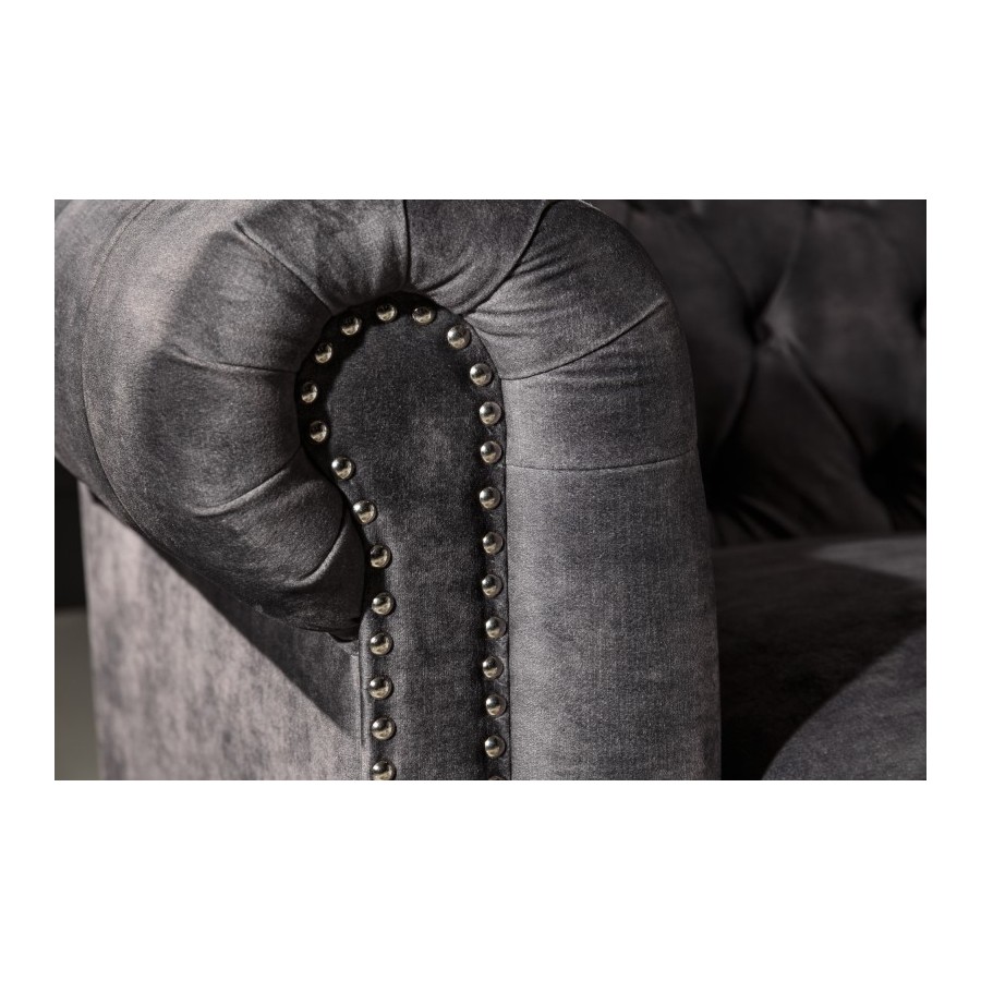 Ta klasyczna sofa Chesterfield wykonana z wysokiej jakości aksamitu w błyszczącej szarości zainspiruje Cię! Trzyosobowy ma typowo zakrzywione podłokietniki i powierzchnię oparcia ozdobioną guzikami oraz nitami. Ale sofa jest nie tylko prawdziwym atutem pod względem wyglądu: sofa jest szczególnie wygodna dzięki wysokiej jakości tapicerce sprężynowej kieszeni w poszczególnych poduszkach siedzisk.